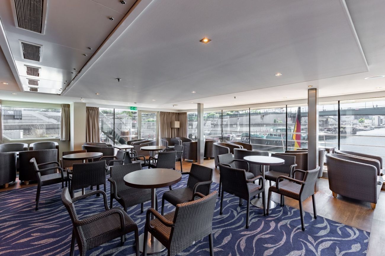 Горна палуба има 24 каюти и 4 суити с панорамни френски прозорци.