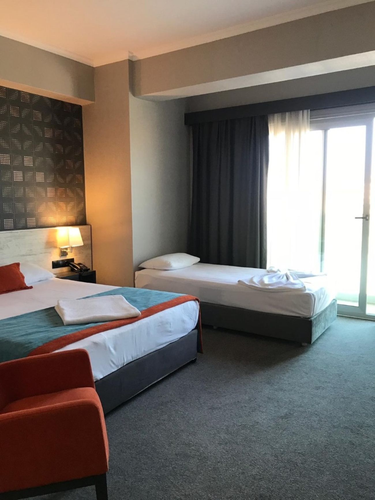 - При настаняване на трима души в стая с три легла в стандартна стая третият човек ползва отстъпка от цената и бива настанен на допълнително легло. Трети възрастен или деца се настаняват на стандартно легло, само ако се заплати фамилна стая или апартамент.