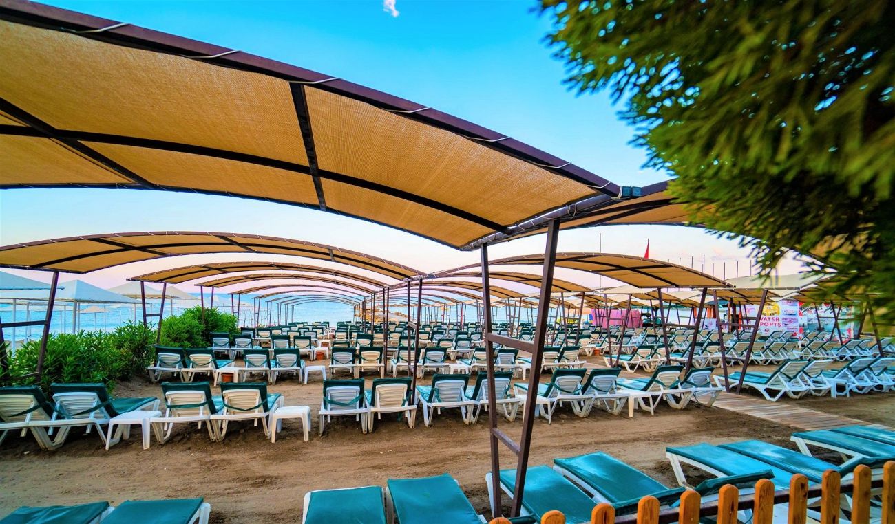 собствен плаж на 400 м. от хотела. Чадъри, шезлонги и матраци на плажа и при басейна - безплатно. Плажни кърпи - срещу депозит.