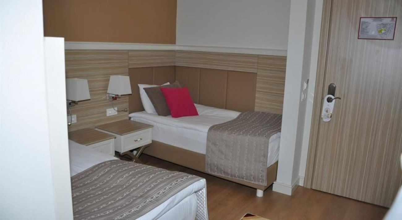 - При настаняване на трима души в стая с три легла в стандартна стая третият човек ползва отстъпка от цената и бива настанен на допълнително легло. Трети възрастен или деца се настаняват на стандартно легло, само ако се заплати фамилна стая или апартамент.