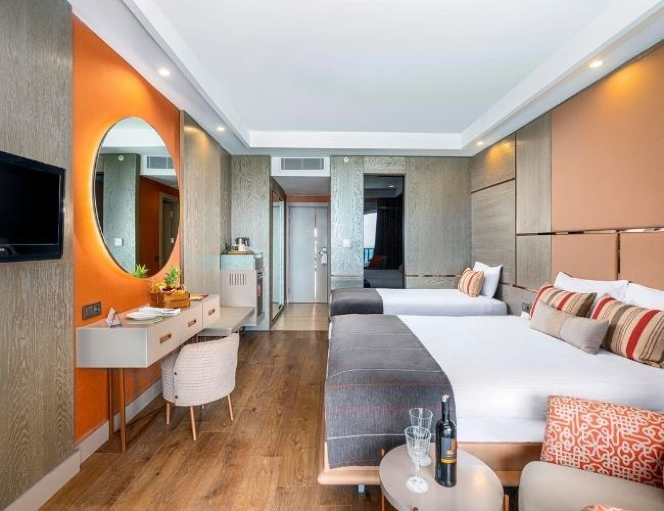 Хотелът разполага с 360 стаи, всички стаи са оборудвани с климатик, телевизор, телефон, баня с душ, сешоар, интернет, сейф, минибар - (ежедневно се зарежда с вода, безалкохолни напитки, бира, шоколад и чипс (безплатно).