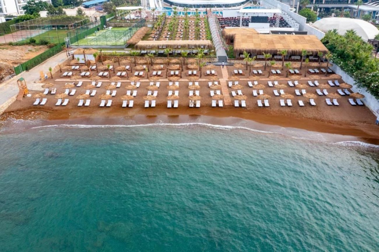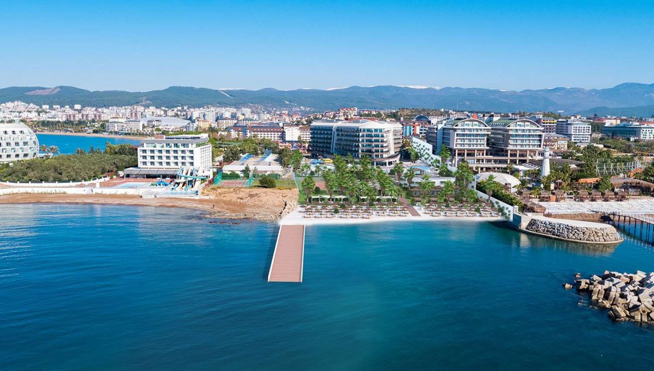 Хотелът е разположен на самия плаж, в района на Алания, на 104км. от летище Анталия,на територия от 25 000кв.м.