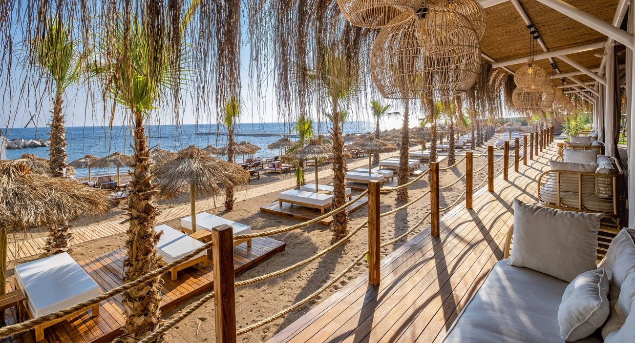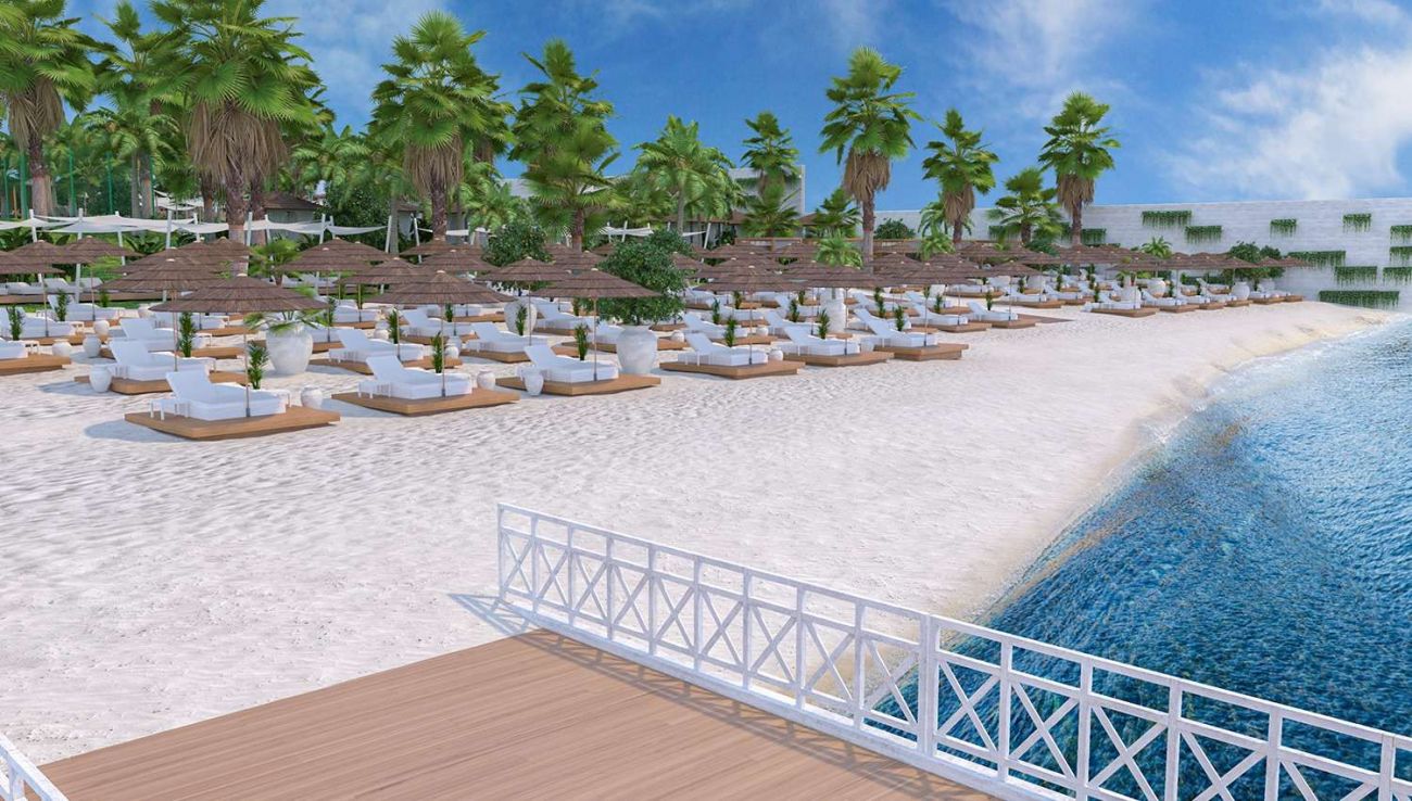 Собствен, платформа и пясъчно - чакълест. Чадъри, шезлонги и матраци на плажа и при басейна – безплатно, плажни кърпи – безплатно.