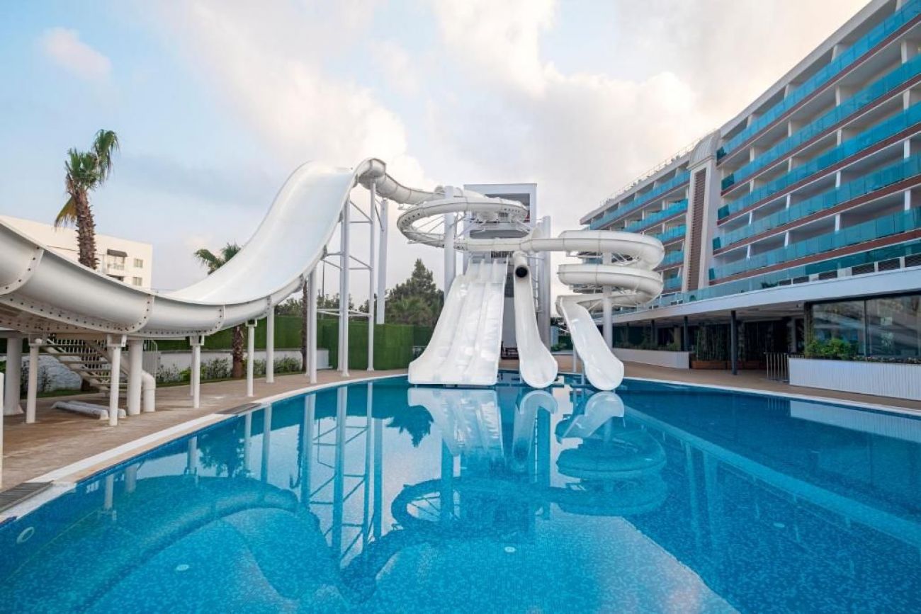 Основен ресторант, 2 а ла карт ресторанта, сладкарница , 3 бара, 1 закрит и 2 открити басейна, 4 водни пързалки, мини клуб, батут, турска и парна баня, сауна, фитнес, дартс, тенис на маса, мини голф, дартс, волейбол, баскетбол, мини футбол, безжичен интернет.