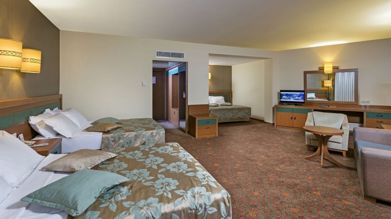 - При настаняване на трима души в стая с три легла в стандартна стая третият човек ползва отстъпка от цената и бива настанен на допълнително легло. Трети възрастен или деца се настаняват на стандартно легло, само ако се заплати фамилна стая или апартамент.