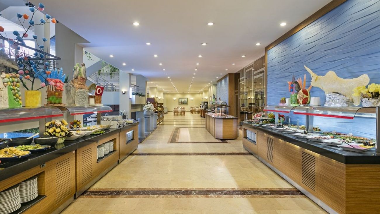 Основният ресторант сервира ястия на шведска маса. На разположение са 6 бара, сервиращи богата гама от алкохолни и безалкохолни напитки.СПА съоръженията включват турска баня, парна баня, сауна и закрит басейн.