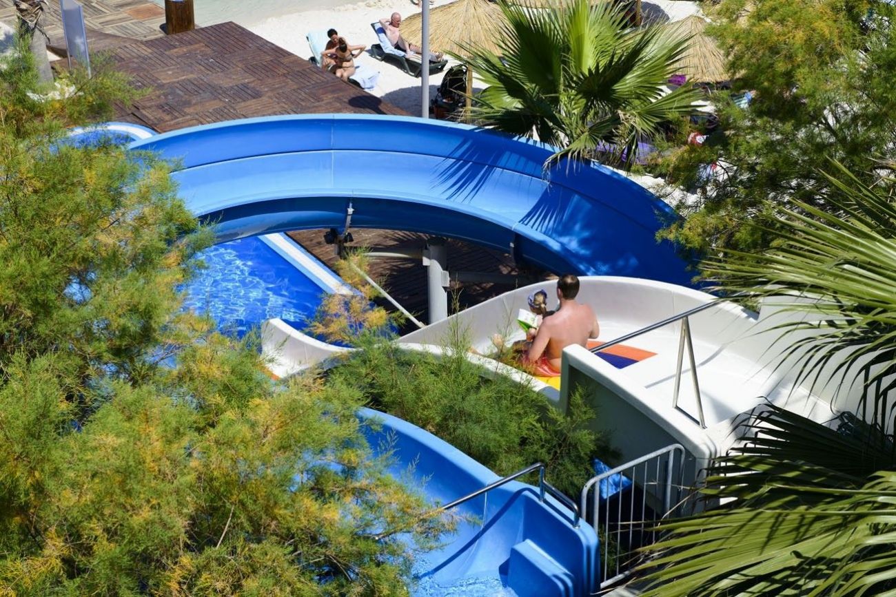Детско меню, детски басейн, водни пързалки, детска площадка, мини клуб (4–12 год.), детски стол.