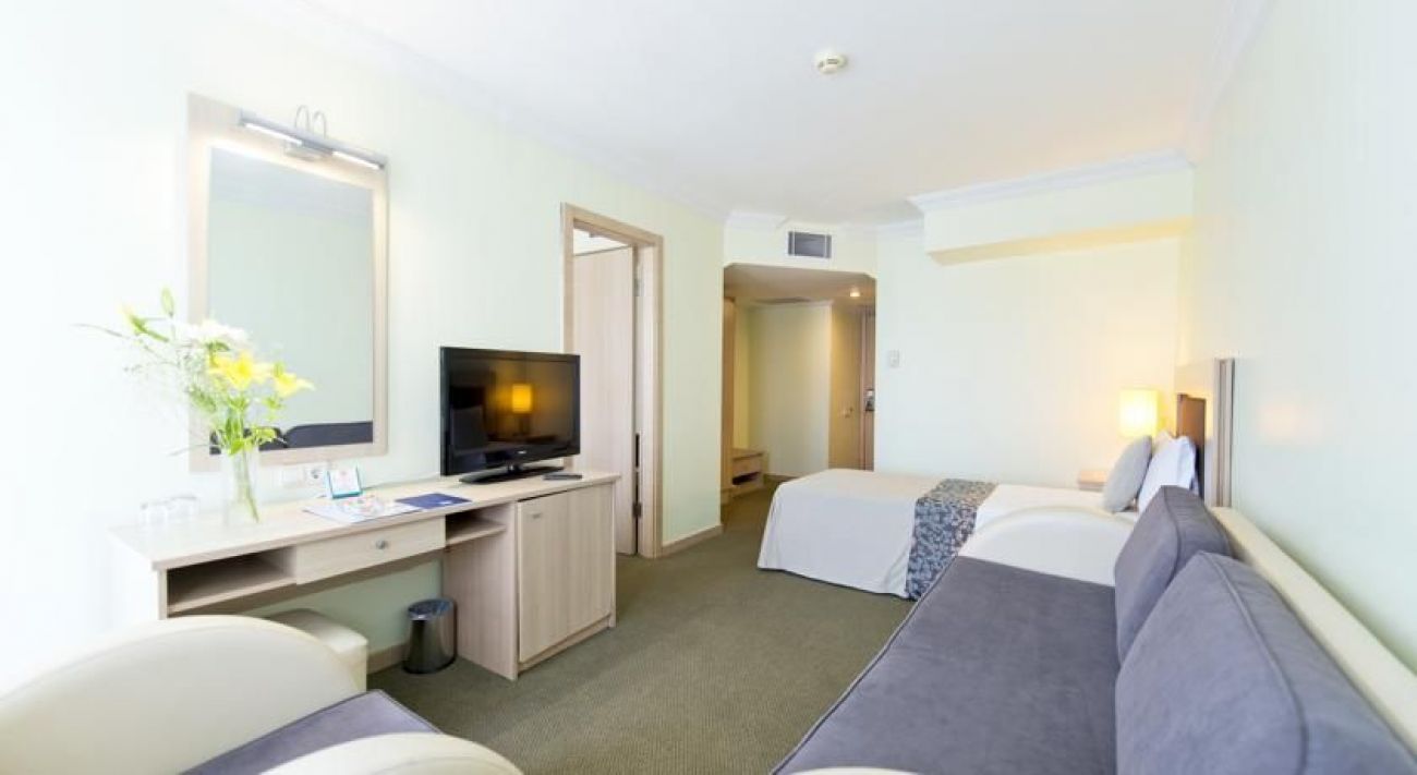 - При настаняване на трима души в стая с три легла в стандартна стая третият човек ползва отстъпка от цената и бива настанен на допълнително легло. Трети възрастен или деца се настаняват на стандартно легло, само ако се заплати фамилна стая или апартамент.