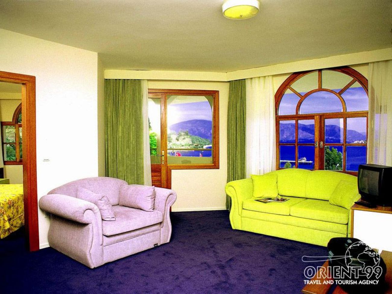 На 105 км. от летището в гр. Даламан, 8 км от центъра на Мармарис, в Ичмелер, на 50 м. от брега на морето с обществен плаж – пясъчен. Реновиран 2024