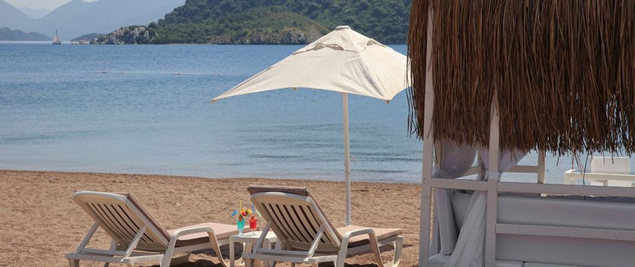 На 105 км. от летището в гр. Даламан, 8 км от центъра на Мармарис, 500 м. от Ичмелер, на брега на морето със собствен плаж – пясъчен. Реновиран 2005г.