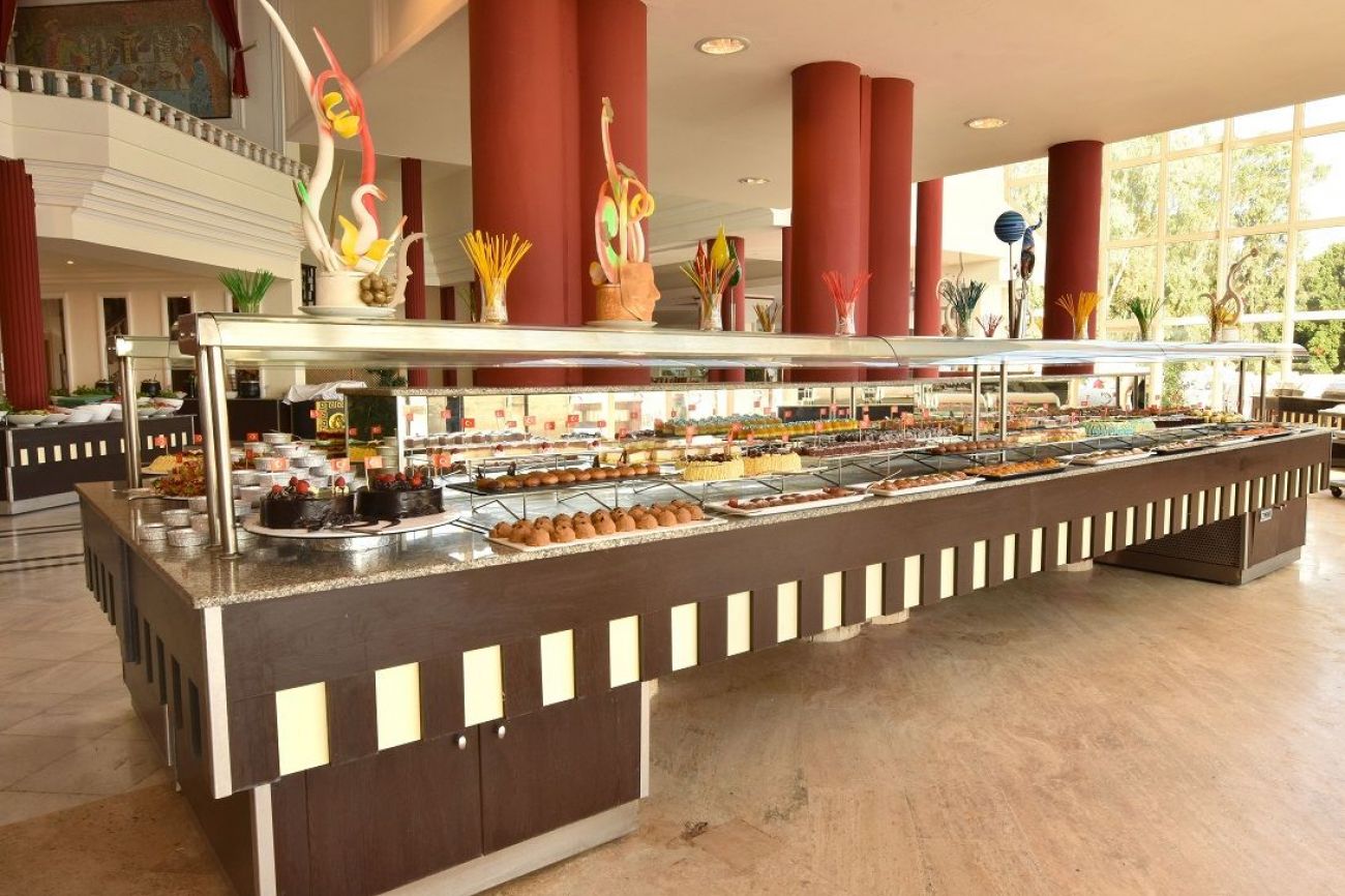 Работно време на основния ресторант: закуска 07:00-10:00, късна закуска 10:00-11:00, обяд 12:30-14:30, вечеря 18:30-21:00. Бюфет. През деня се предлагат закуски на плажа и край басейна.