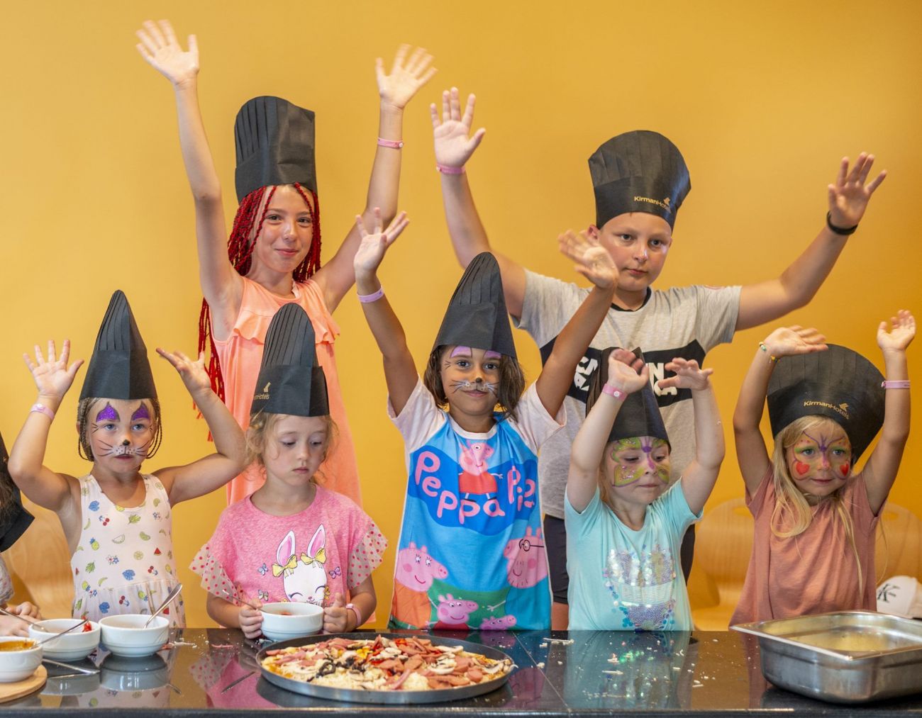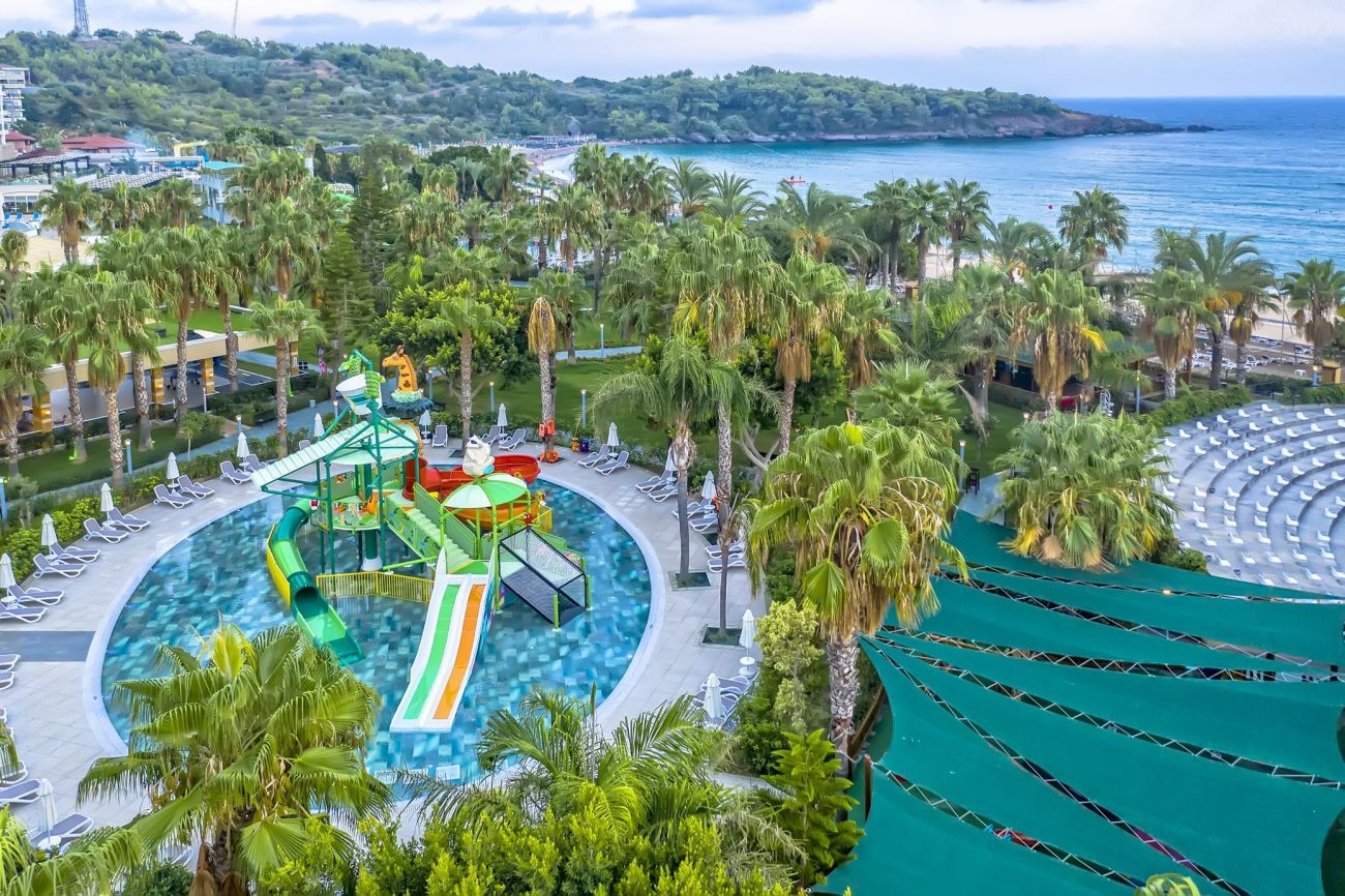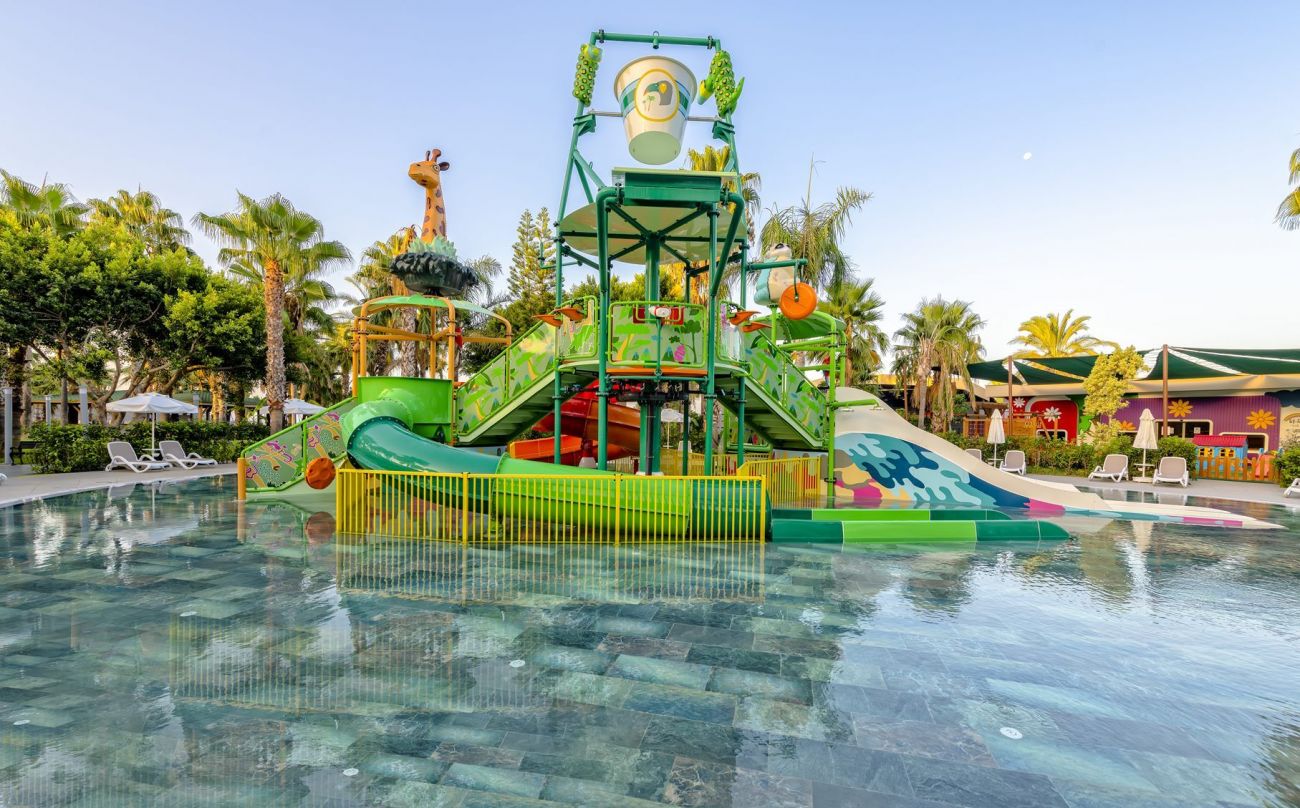 детско меню, детски басейн, водни пързалки, мини клуб (4–12 г.), макси клуб (12-18 г.), детска дискотека, детска площадка.