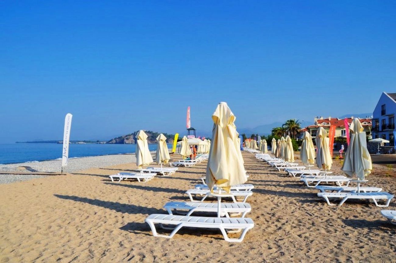 Собствен - пясъчен. Чадъри, шезлонги на плажа и при басейна – безплатно.