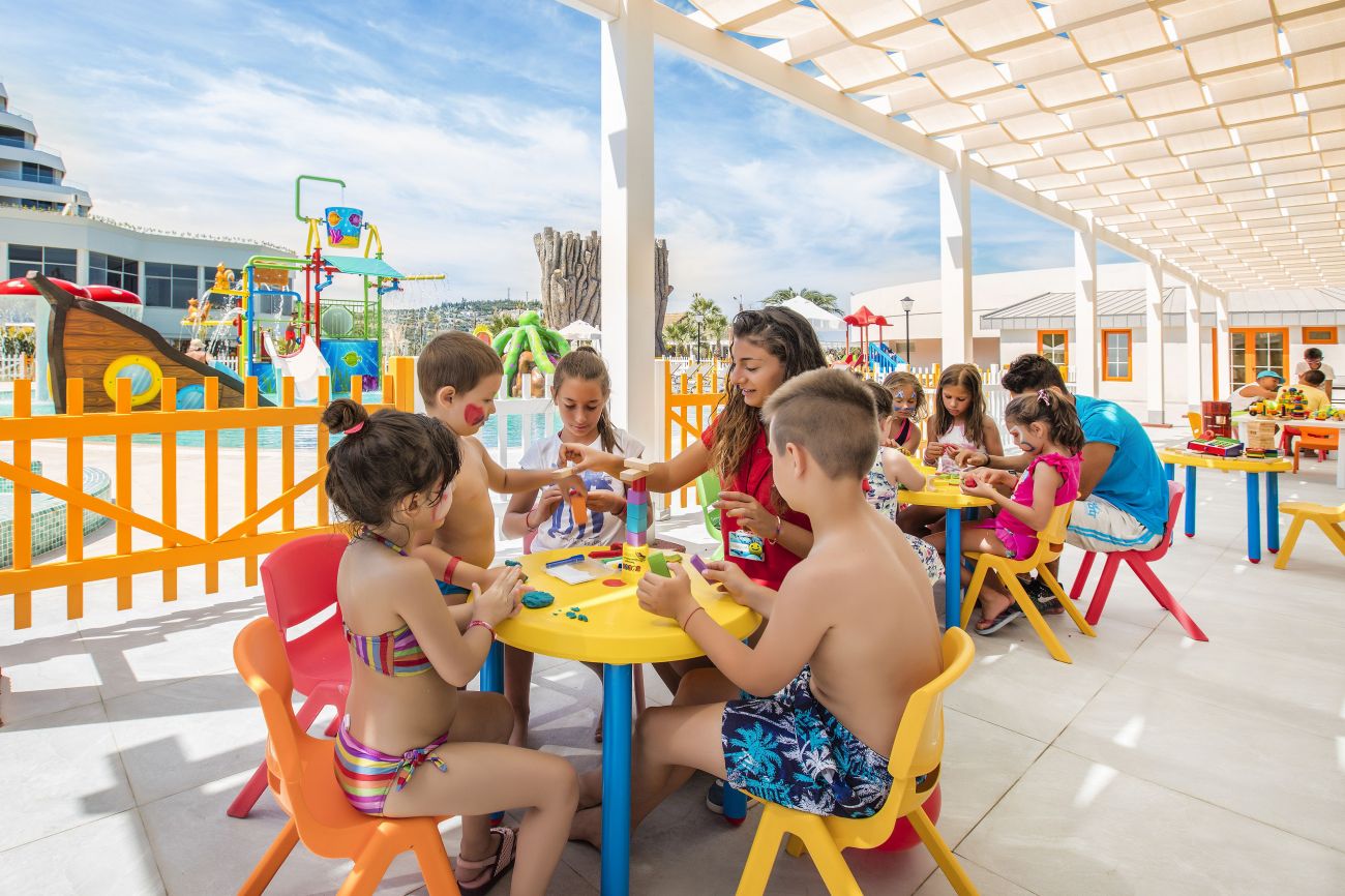 10 открити басейна с 7 нови водни пързалки, 1 основен открит басейн - 1200 m², един от които е релакс басейн 500 m², закрит басейн -140 m², детски басейн с водни пързалки 200 m², детска площадка, мини клуб, турска баня, сауна, аеробика, фитнес център, тенис на маса, баскетбол, наем на тенис ракети и топки, тенис на маса, дартс, мини голф, анимационна програма, безмоторни водни спортове, дискотека (вход, напитки до 02:00), WiFi безжичен интернет (в лоби)