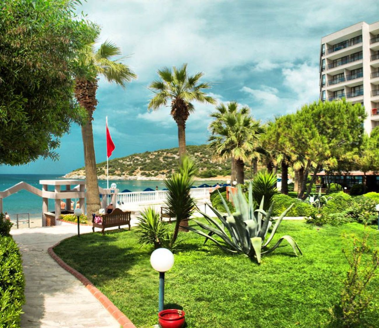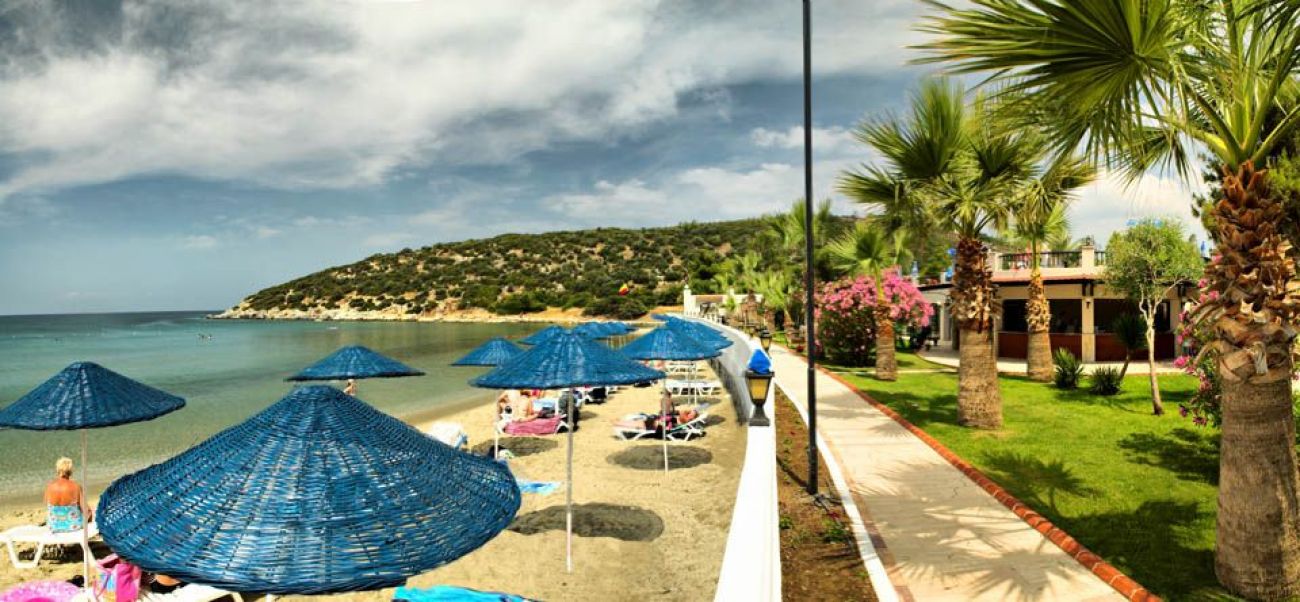 Разположен е на брега на морето, на 4,5 км от центъра на Кушадасъ, на 77 км. от Измир.