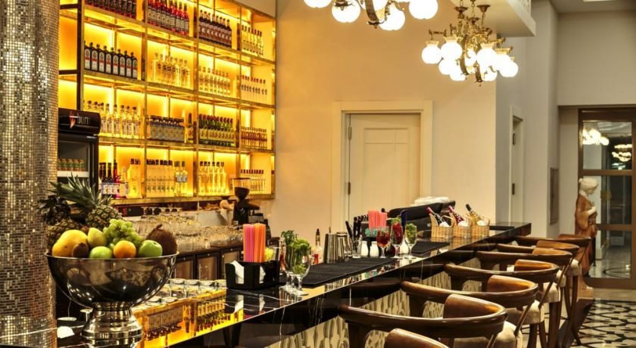 10 бара с различно работно време/лоби бара работи 24 часа/,турско кафе,патисерия,сладолед,на закуска-фрешове.2 външни големи басейна,детски басейн,вътрешен басейн,3 водни пързалки,магазини,СПА център,анимационни програми през деня и вечерта,6 дена в седмицата –жива музика,амфитеатър.