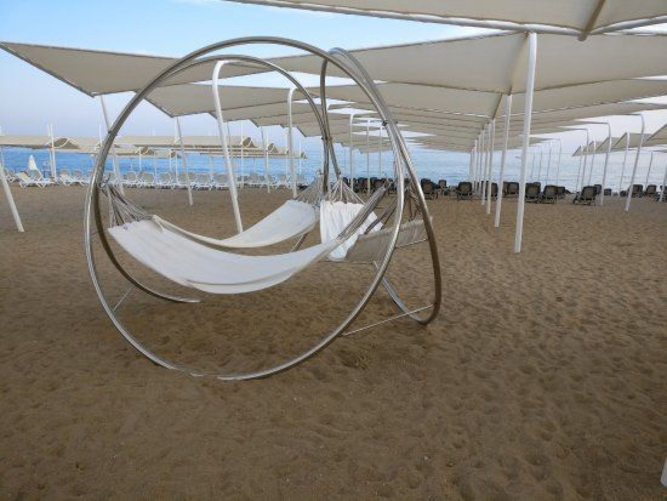Собствен пясъчен плаж на 250м от хотела през пътя. Чадъри,шезлонги, матраци и хавлии – безплатно. На разположение е безплатен автобус до плажа и се движи от 8:00 до 19:00 всеки ден.
