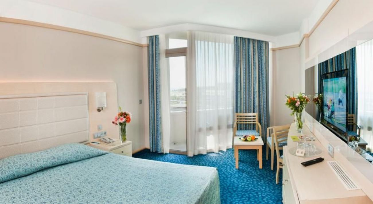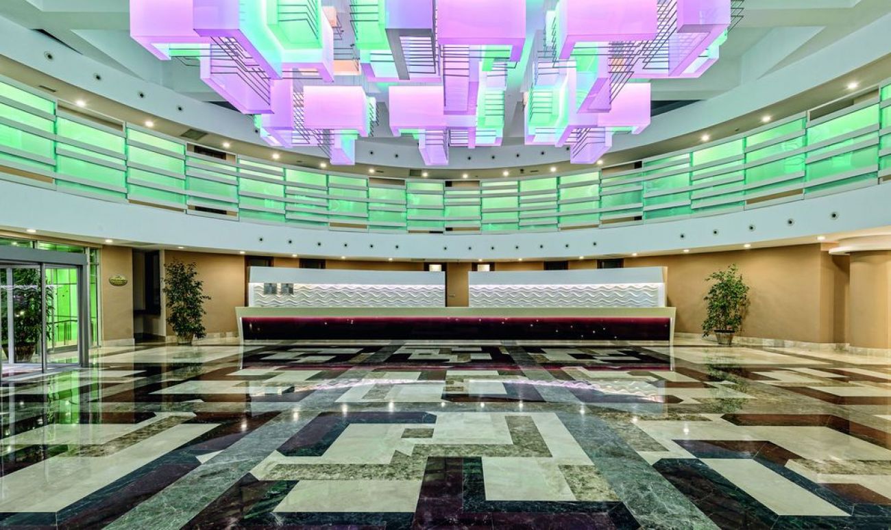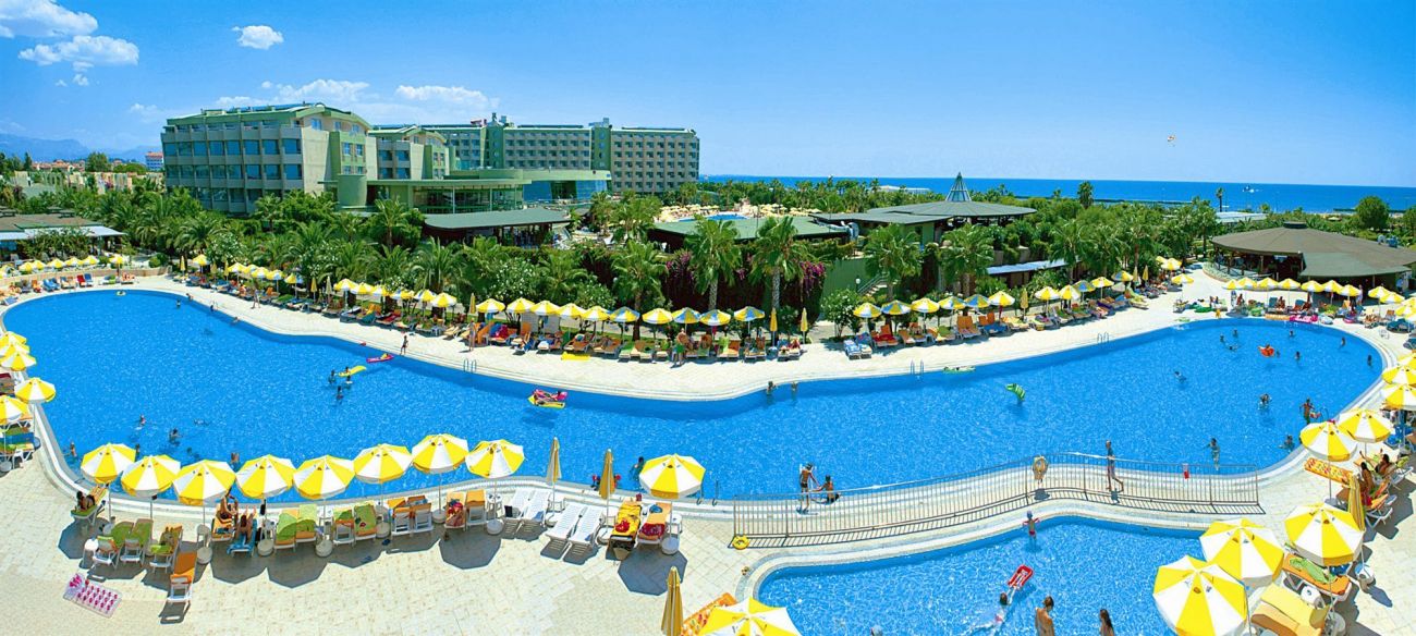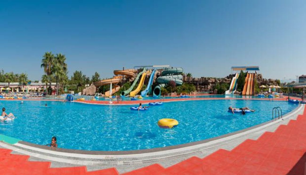 Този крайморски хотел се намира на брега на Средиземно море и разполага с дълъг собствен пясъчен плаж. Предлага 2 открити басейна, аквапарк с 3 басейна и 11 водни пързалки, както и СПА център. Осигурена е безплатна Wi-Fi връзка с интернет.