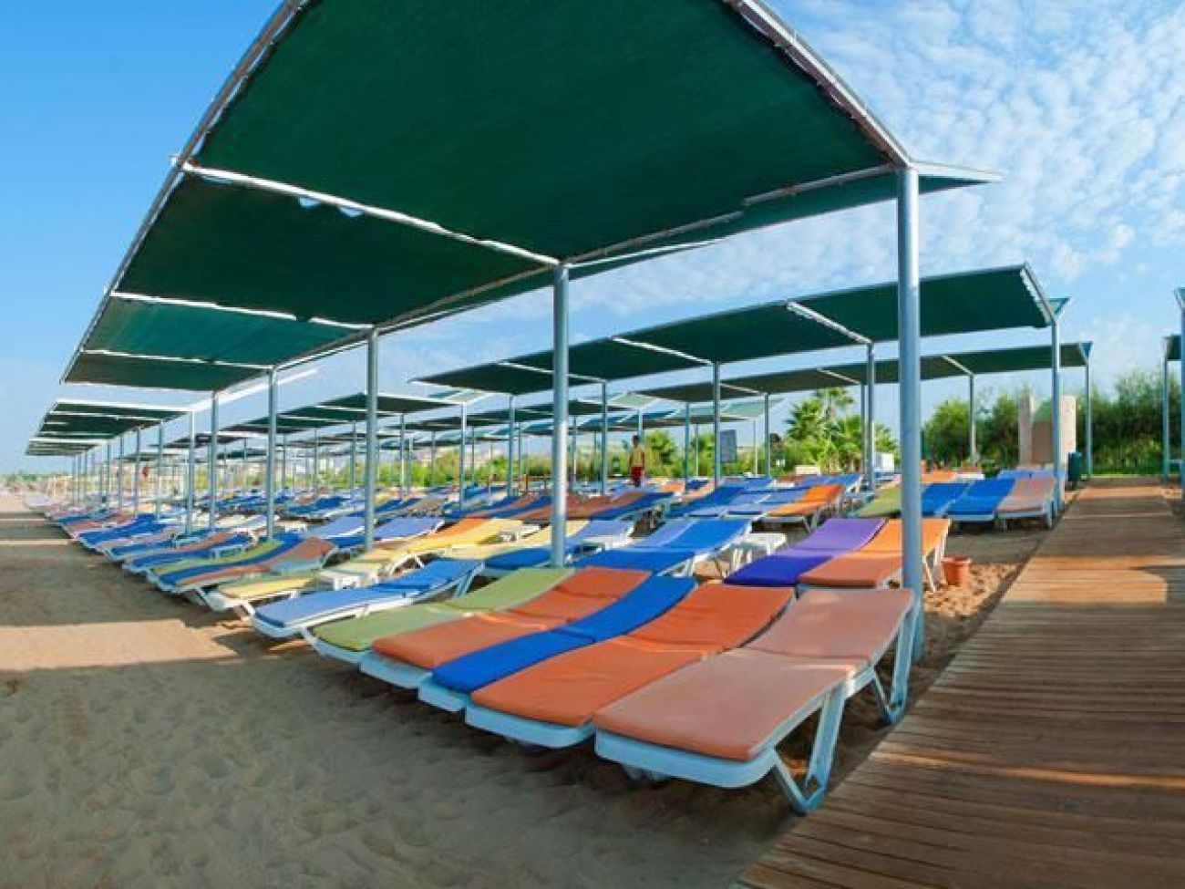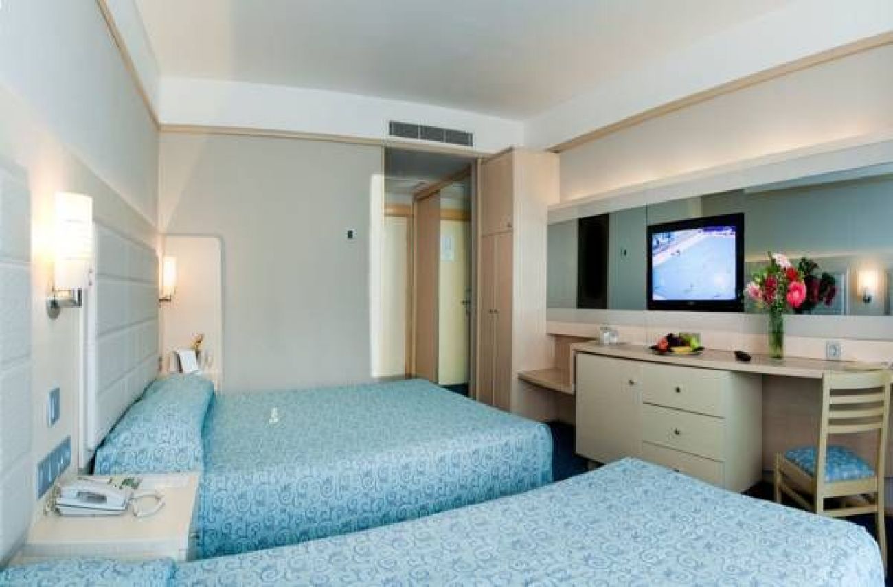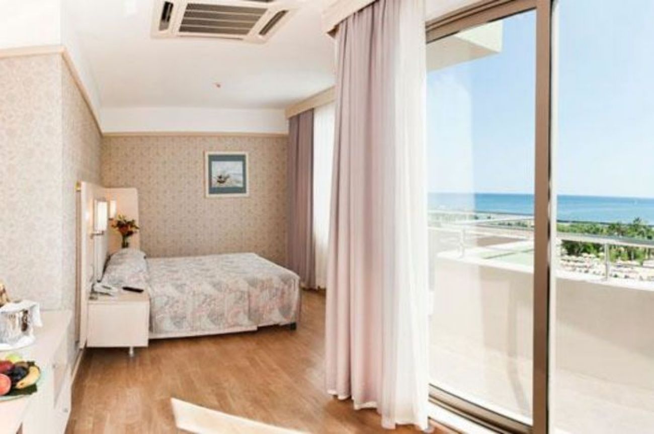 Този крайморски хотел се намира на брега на Средиземно море и разполага с дълъг собствен пясъчен плаж. Предлага 2 открити басейна, аквапарк с 3 басейна и 11 водни пързалки, както и СПА център. Осигурена е безплатна Wi-Fi връзка с интернет.