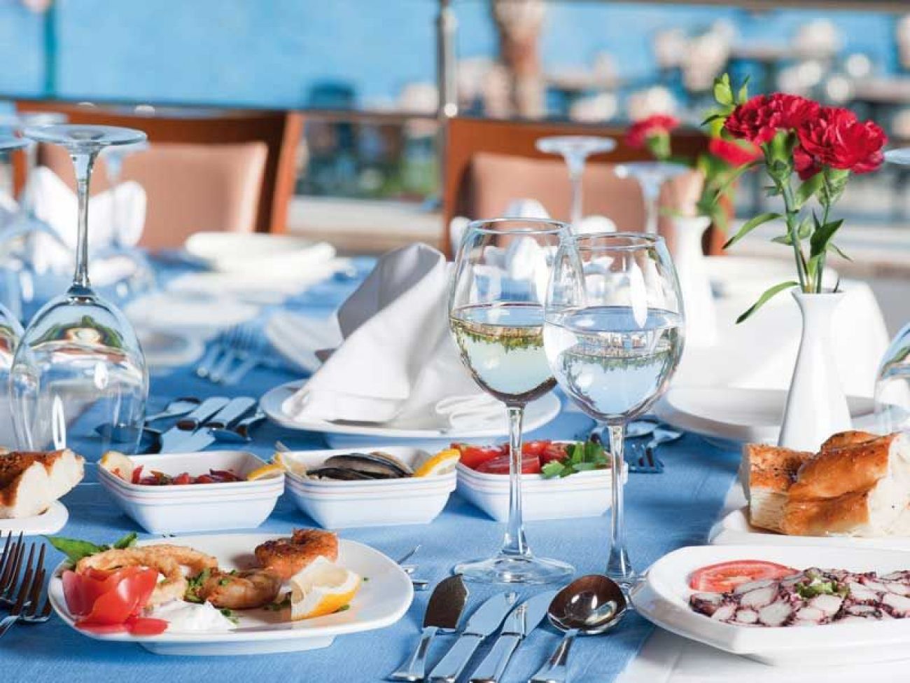 В основния ресторант се сервират вкусни ястия на шведска маса. А ла карт ресторантът предлага турска и италианска кухня, както и морски дарове. Хотелът има 7 бара, в които се поднасят разнообразни алкохолни и безалкохолни напитки.