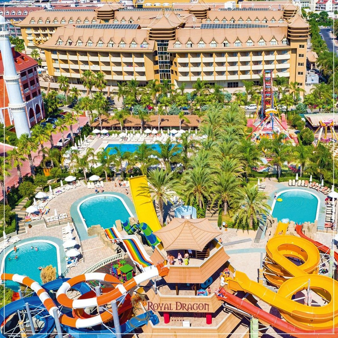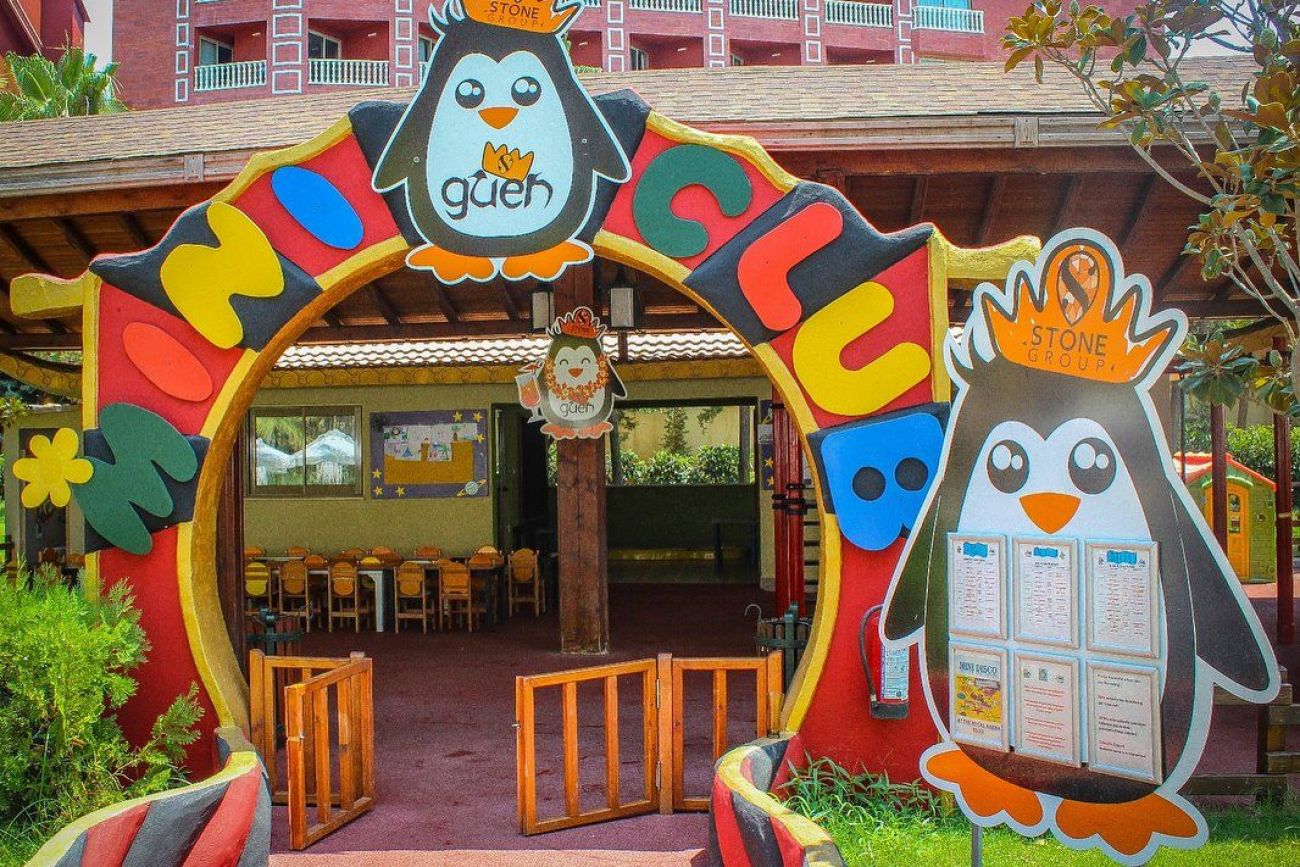 За децата: Детско меню, детски площадки, мини клуб (4-12 г.), 2 детски басейна, водни пързалки, мини дискотека, анимация, лунапарк, зоопарк.