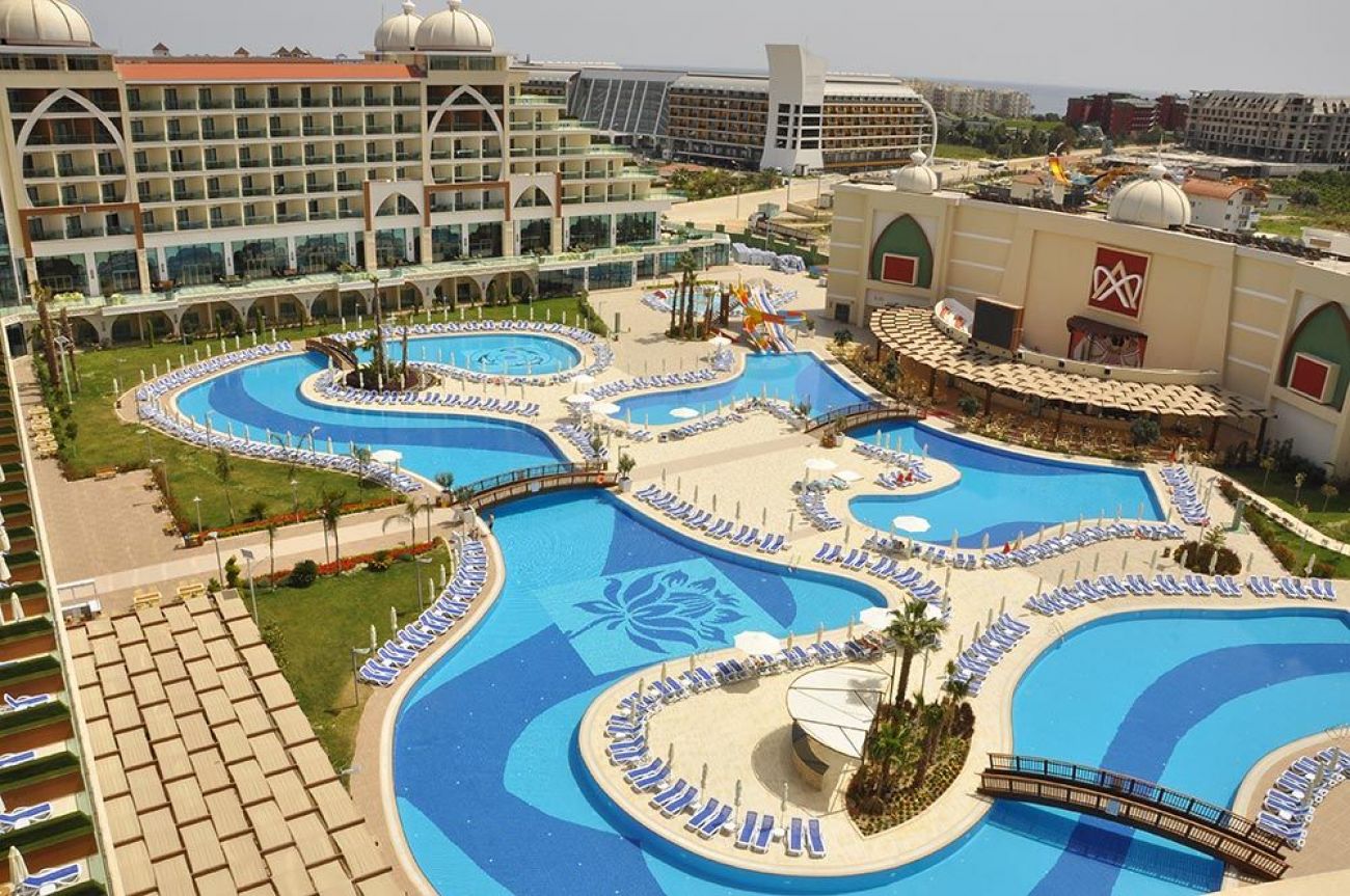основен ресторант, 3 ресторанта a-la-carte (италиански, турски, далекоизточен, с предварителна резервация, за едноседмичен престой посещение на един от ресторантите - безплатно), 5 бара, 2 открити басейна, закрит басейн, 10 водни пързалки, лекарски кабинет, SPA-център, фризьорски салон, търговска част, пералня, химическо чистене, конферентна зала (за 1200 чов.), безжичен интернет (на цялата територия на хотела, безплатно)
