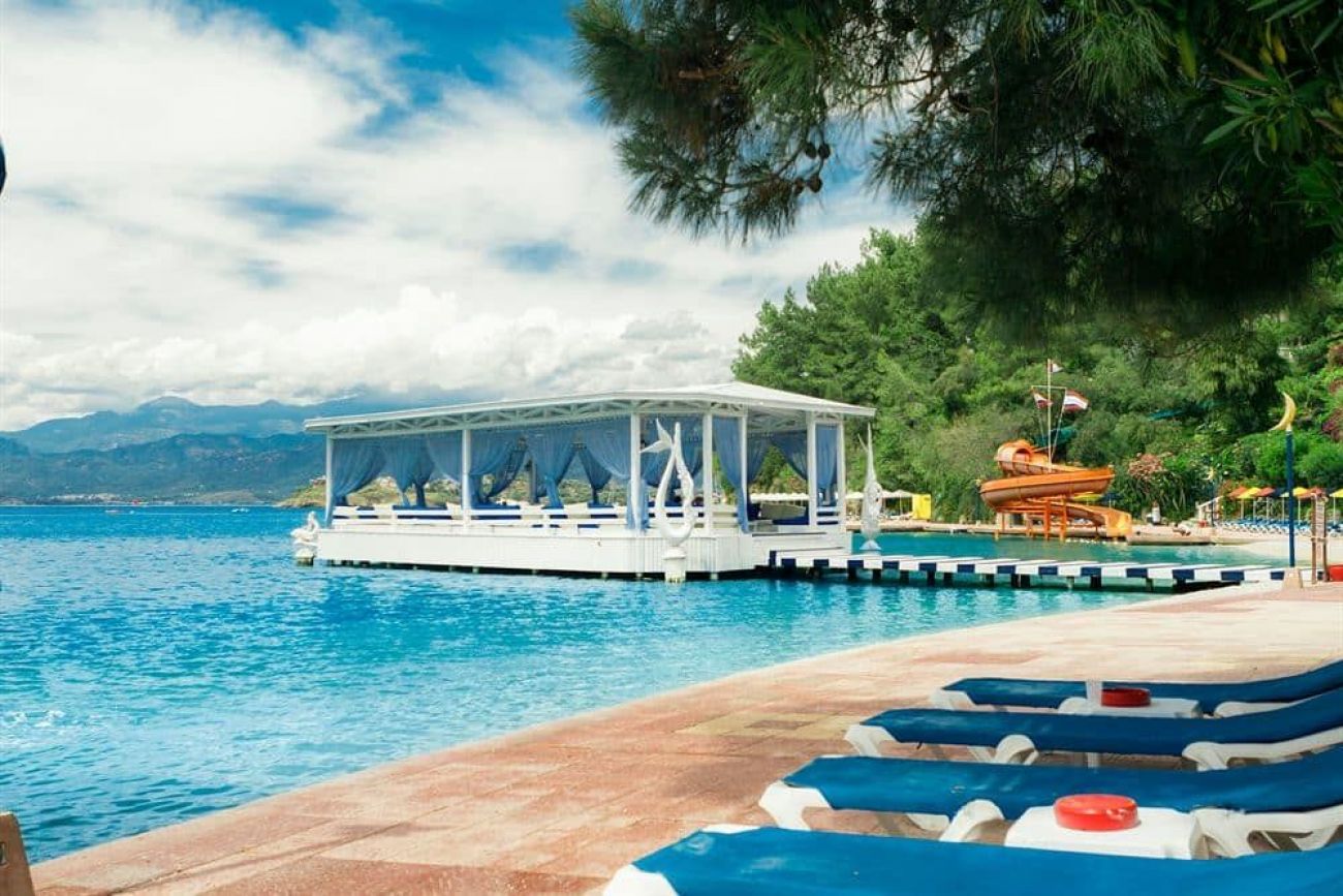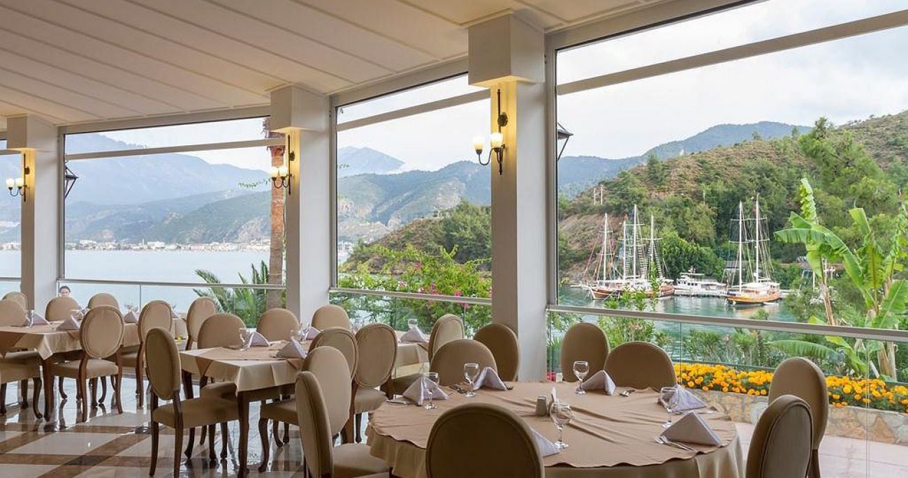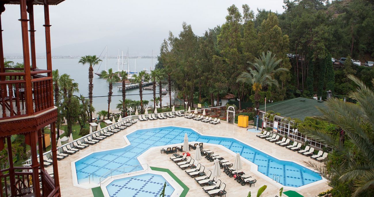 Хотелът се намира на 57км. от летището на гр.Даламан, на 4км. от гр. Фетие, на брега на морето, на полуостров, транспорт с лодка до Фетие по разписание (срещу заплащане). Построен 1989г. Последна реновация 2005г.