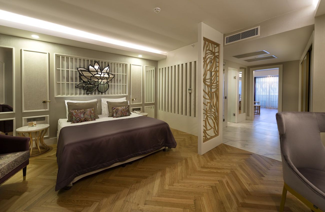 Всяка стая е оборудвана с централен климатик, сателитна телевизия, телефон, баня с душ, сешоар, мини-бар (вода, безалкохолни напитки, бира - ежедневно попълване, безплатно), чехли, сет за кафе и чай, сейф (безплатно), Wi-Fi (безплатно0, балкон, под - ламинат.