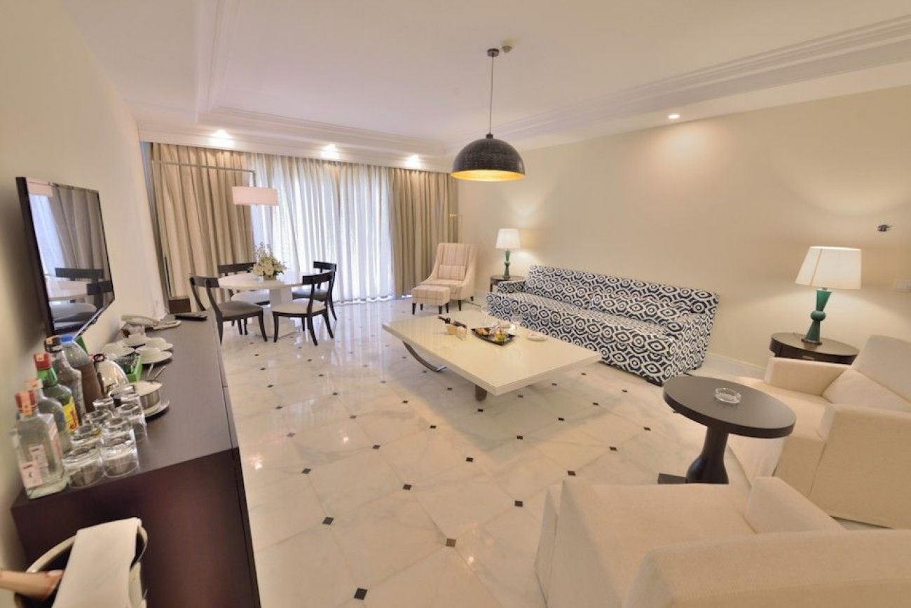 вана, сешоар, халат и чехли, централен климатик, телевизор, телефон, мини бар (безалкохолни напитки и бира се зареждат всеки ден, безплатно), сейф (безплатно), под – килим (Main Building), теракот (Villas), балкон, почистване на стаята – ежедневно, смяна на спалното бельо – 3 пъти седмично, room service (24 часа, платено), интернет Wi Fi (първите 30 мин. безплатно)