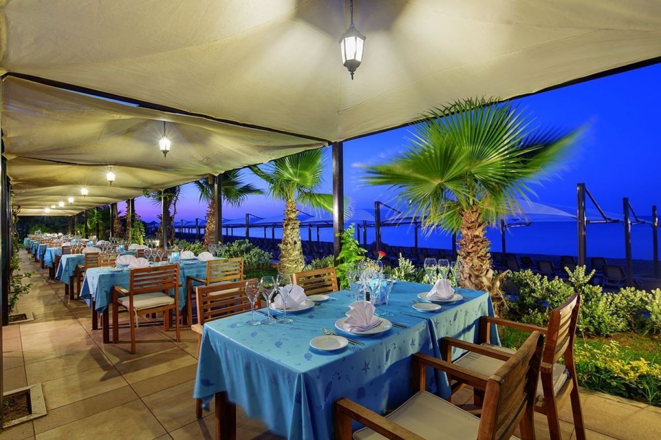 основен ресторант, диетична храна, 5 ресторанта a la carte (италиански, азиатски, турски, рибен, мексикански - с предварителна резервация, за времето на престой в хотела, посещение на един от ресторантите - безплатно), 5 бара (един от тях работи 24 часа), 4 открити басейна, закрит басейн, 2 водни пързалки (за възрастни и за деца), кинотеатър, лекарски кабинет, СПА център (платено), фризьорски салон (платено), магазини, пералня, химическо чистене, конферентна зала (за 200 души), футболно поле (90х45 м)