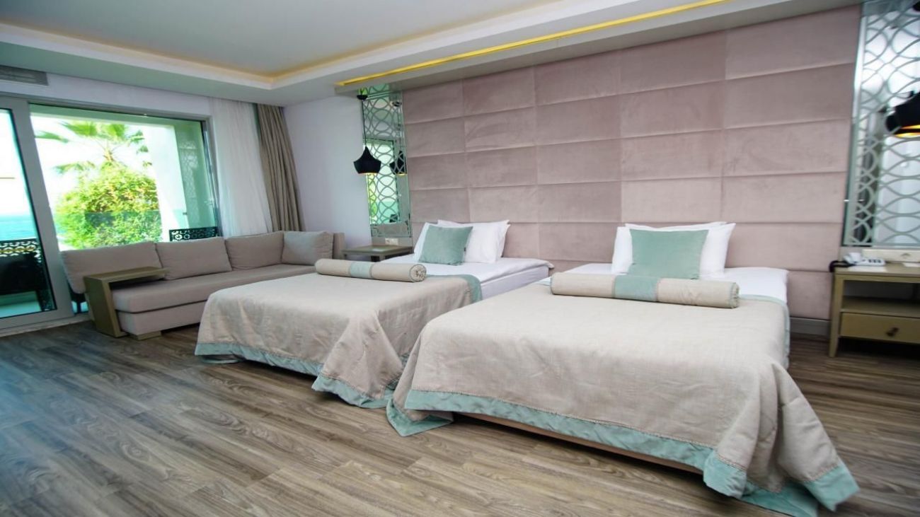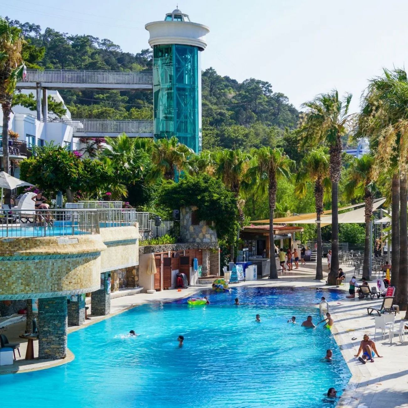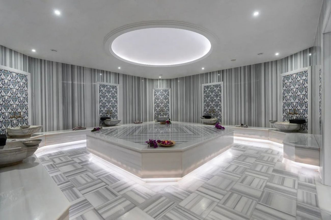 ресторант, 3 ресторанта a la carte (турски, италиански и рибен, с предварителни записвания), 3 бара, 3 открити басейна, закрит басейн, 2 водни пързалки лекарски кабинет (1 път дневно), обменно бюро, пералня, магазини, козметичен салон, коли под наем, паркинг; За деца: детски басейн, детска площадка, мини-клуб (4–12 г.) детегледачка (срещу заплащане)