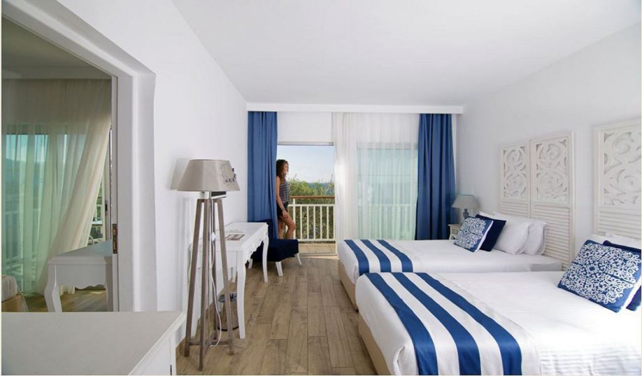 душ или вана, сешоар, индивидуален климатик, телевизор, телефон, мини-бар (празен), сейф (в стаята, срещу заплащане), под – теракота, балкон/тераса (не навсякъде), room-service, почистване на стаите – ежедневно, смяна на спалното бельо – 2 пъти седмично