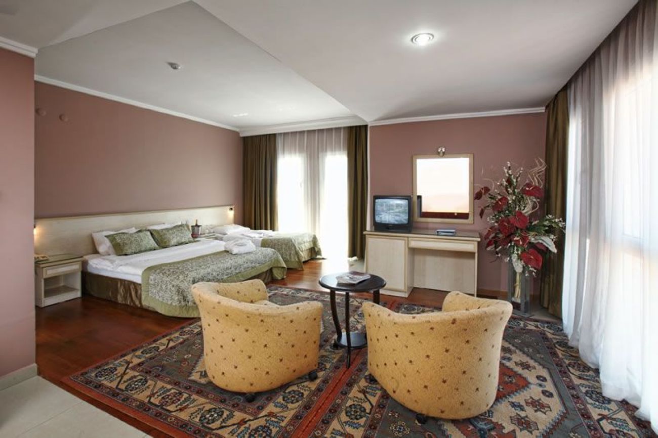 5. При настаняване на трима души в стая с три легла в стандартна стая третият човек ползва отстъпка от цената и бива настанен на допълнително легло. Трети възрастен или деца се настаняват на стандартно легло, само ако се заплати фамилна стая или апартамент.