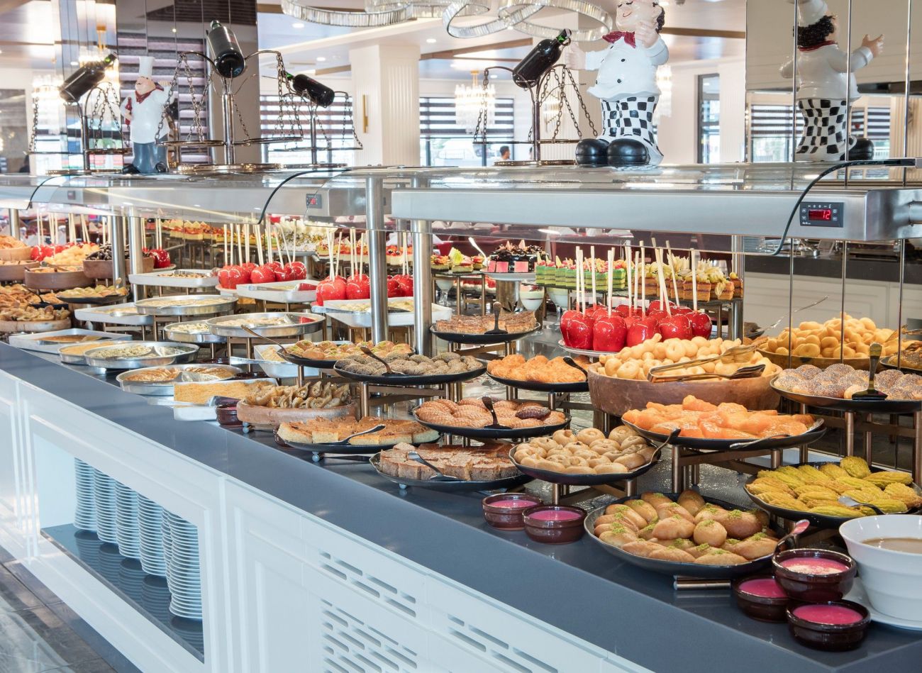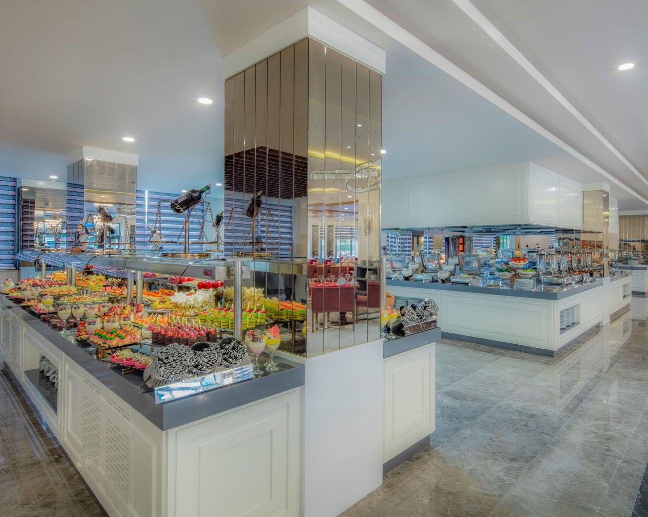 През деня се предлагат закуски от 12:00-16:00 часа в снек-баровете и сладкиши от 12:00-18:00 часа в сладкарница Арте.