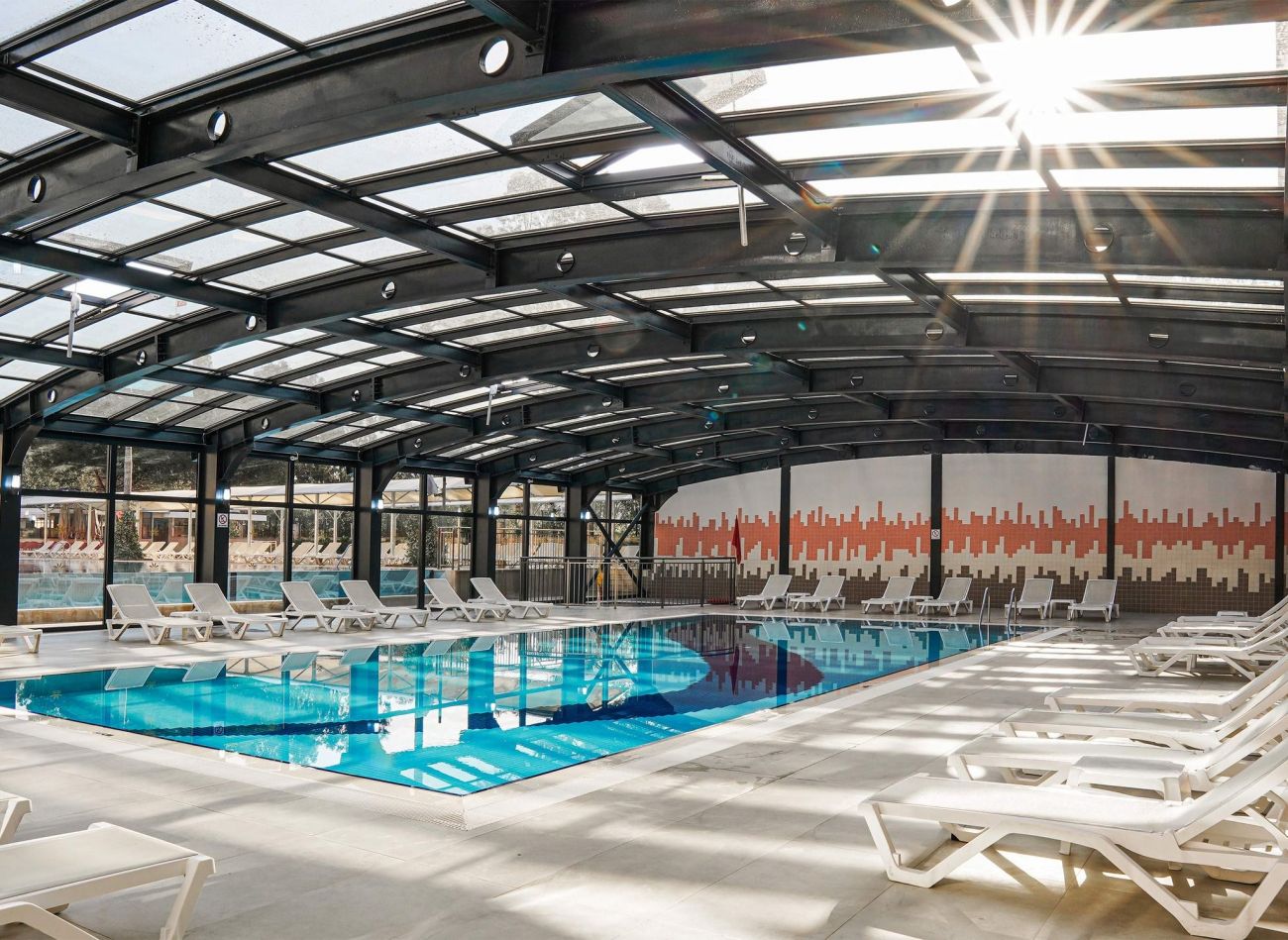 1 вътрешен басейн 130 кв.м (отопляем от 1/11 до 31/03).