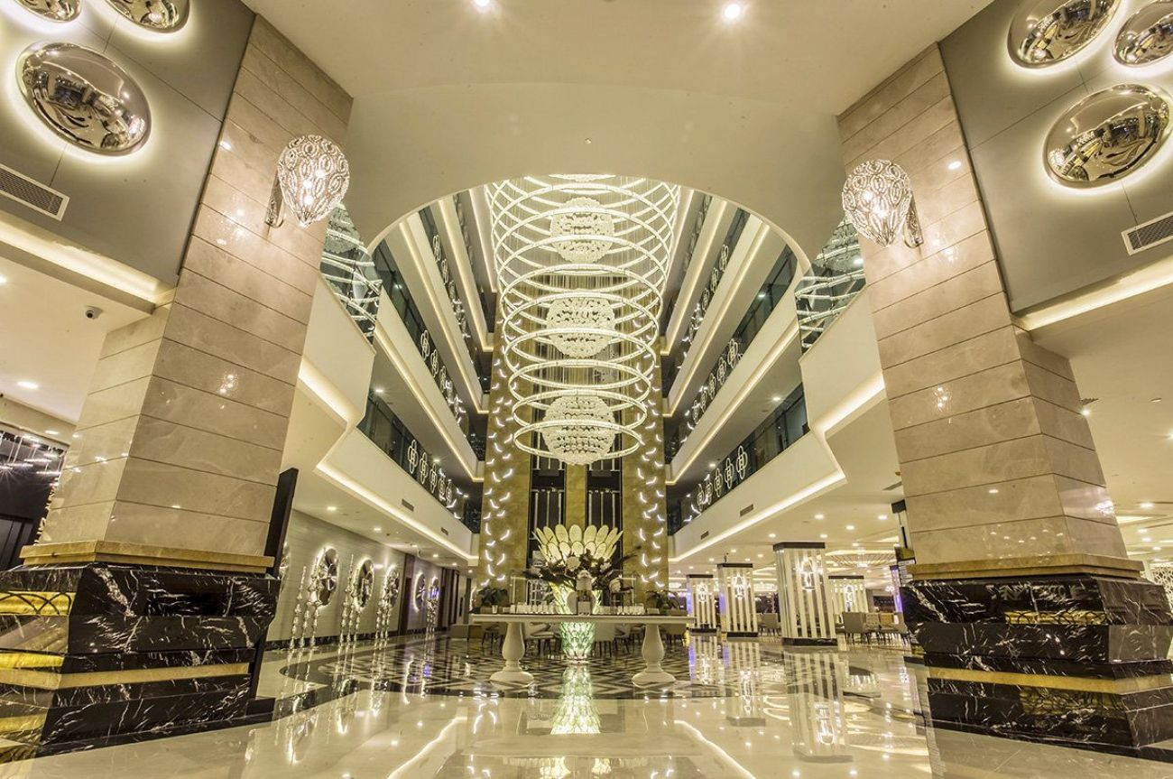 основен ресторант, а-ла-карт ресторант (османски, италиански, рибен), 3 бара, сладкарница, дискотека, плувен басейн, детски басейн, детски пързалки, вътрешен басейн, СПА център, хамам, сауна, витамин бар, фитнес, билярд, волейбол, дартс, анимация, конферентна зала, WI-FI.