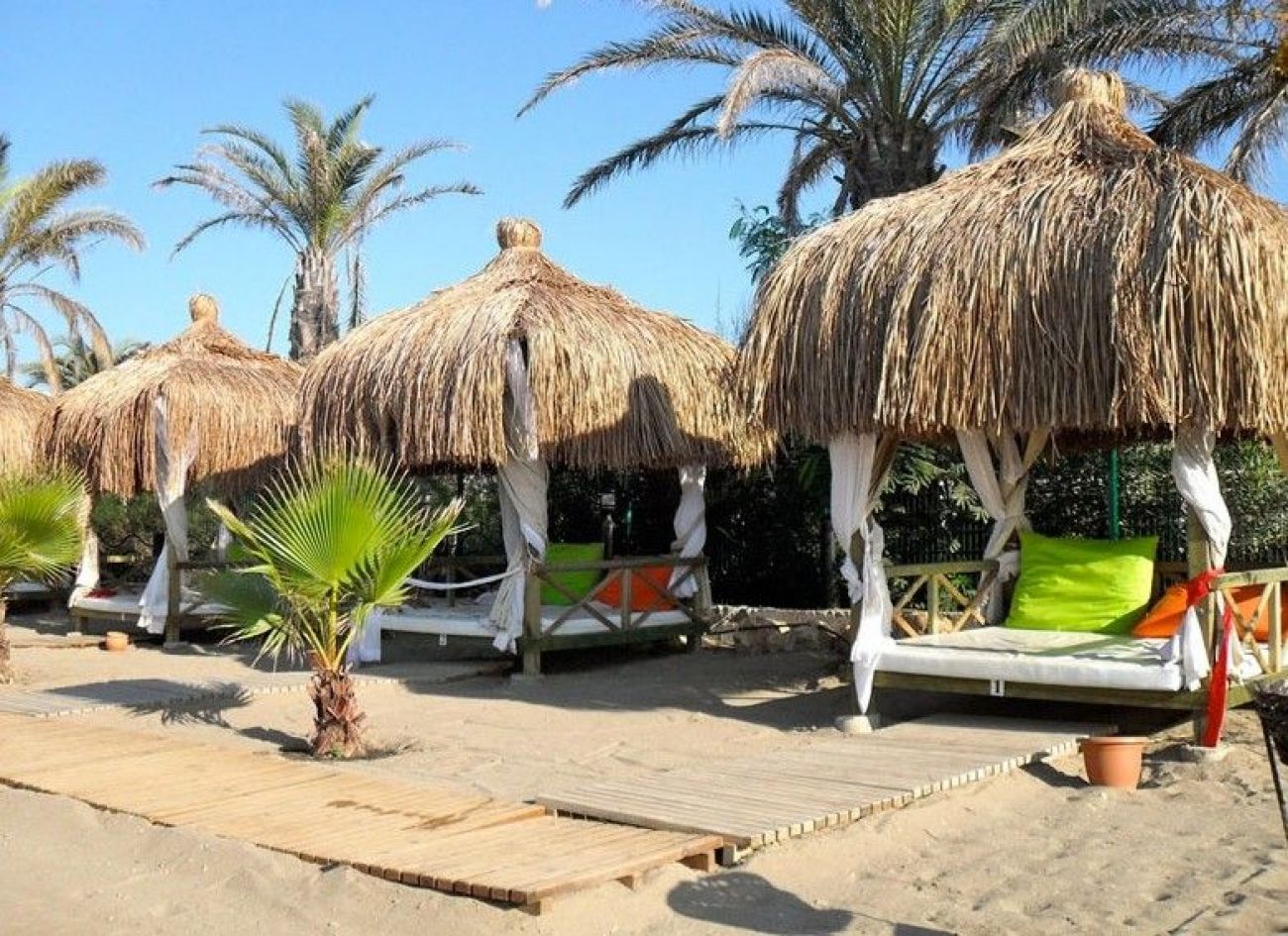 собствен, пясъчен на 150м. от хотела, със сертификат „Син флаг”. Чадъри и шезлонги на плажа и при басейна – безплатно, плажни кърпи – безплатно.