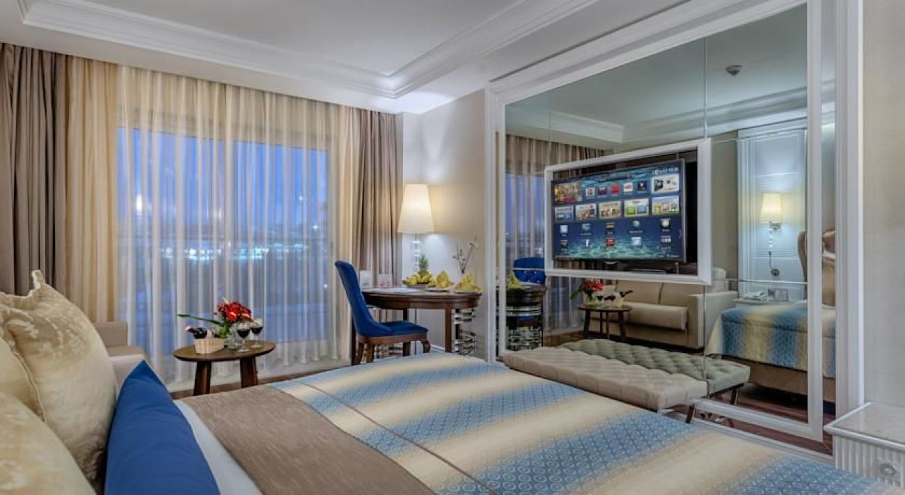 Хотелът разполага с общо 724 стаи, от които 452 стандартни и 125 семейни. Всички стаи са оборудвани с: климатик, телевизор, телефон, баня с душ, сешоар, минибар (безплатен), сейф (безплатен), балкон, интернет. Почистване на стаите и смяна на кърпите – всеки ден, смяна на бельото – 3 пъти в седмицата.