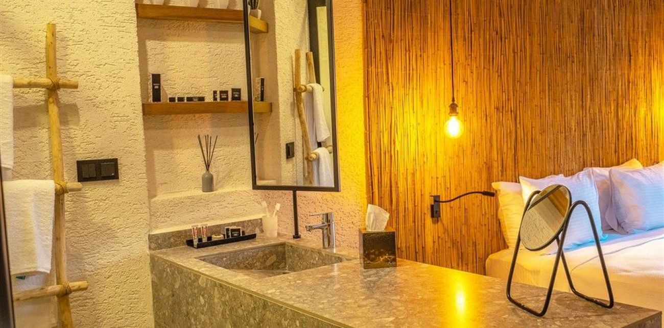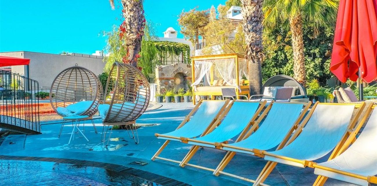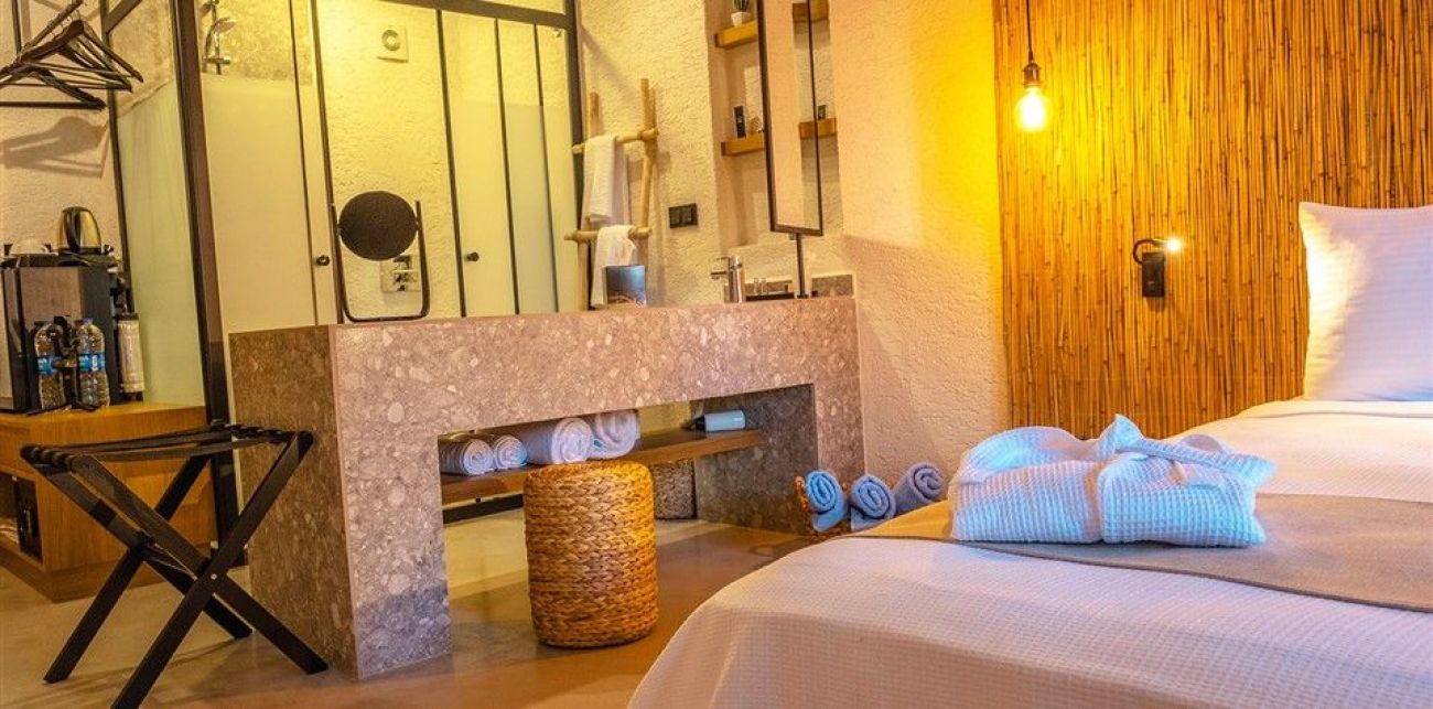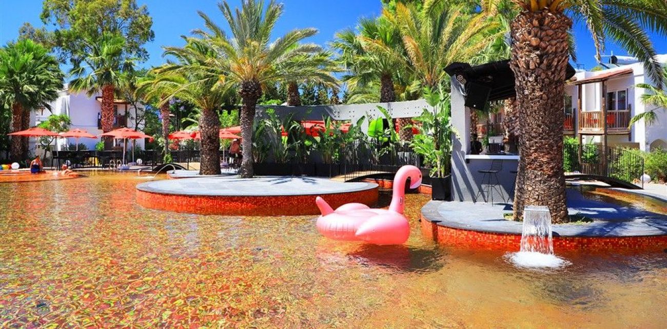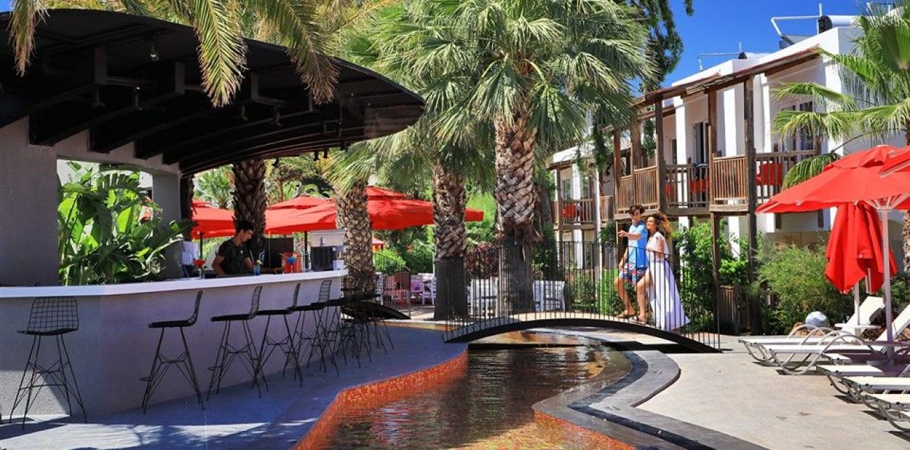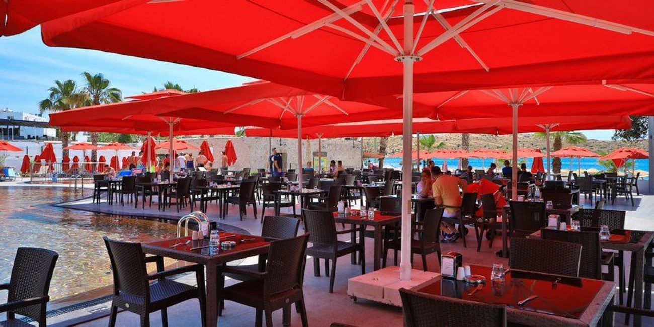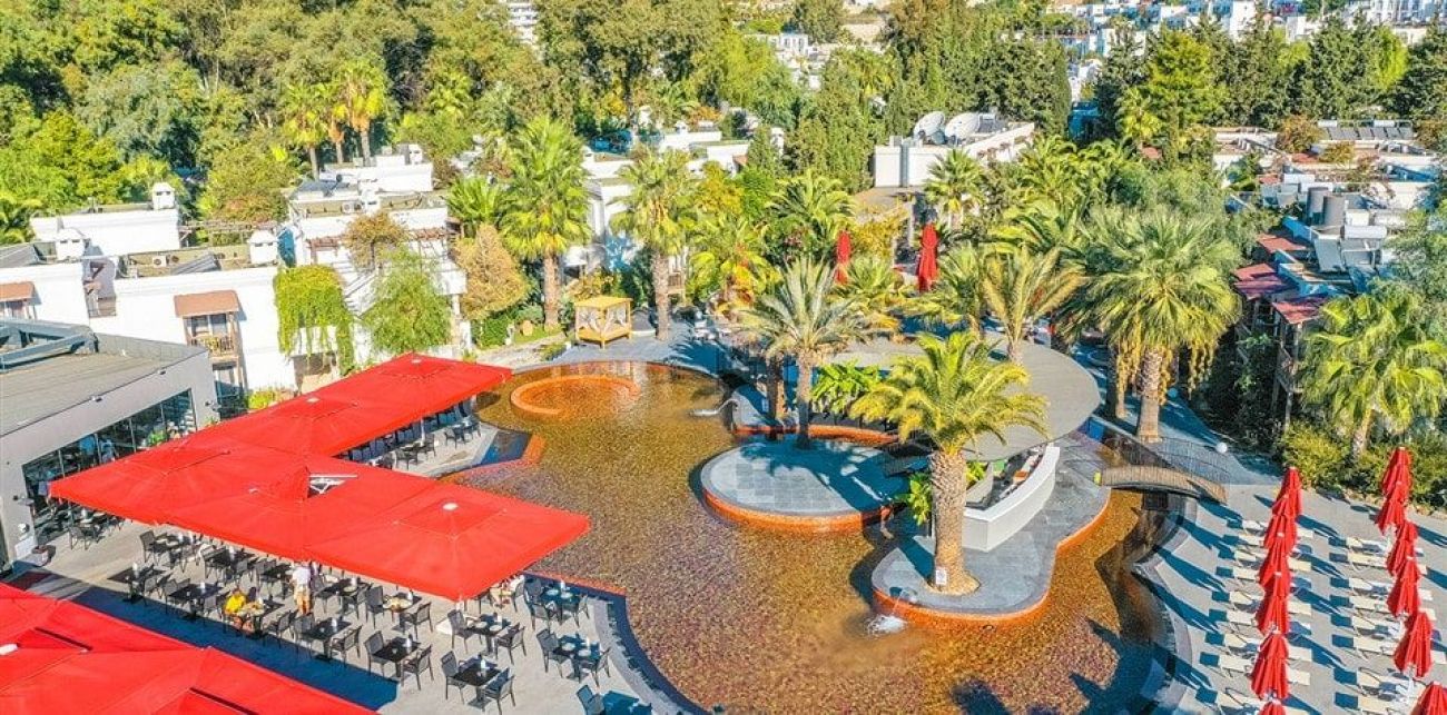Хотел: разположен на 50 км от летището и 4 км от центъра на гр.Бодрум, в местноста Гюмбет, на брега на морето, с обща площ от 11 900 м2. Хотелът се състои от единадесет 2-етажни сгради (със стаи с изглед към градината, от които 10 стаи с изглед към басейна): 168 standart room (макс. 2 +1 души., 16 m2), 8 едностайни deluxe room (french bed, макс . 2 души., 16 m2).Хотелът е с настаняване само за възрастни 16+ и рабори с концепция ALA CARTE ALL INCLUSIVE.