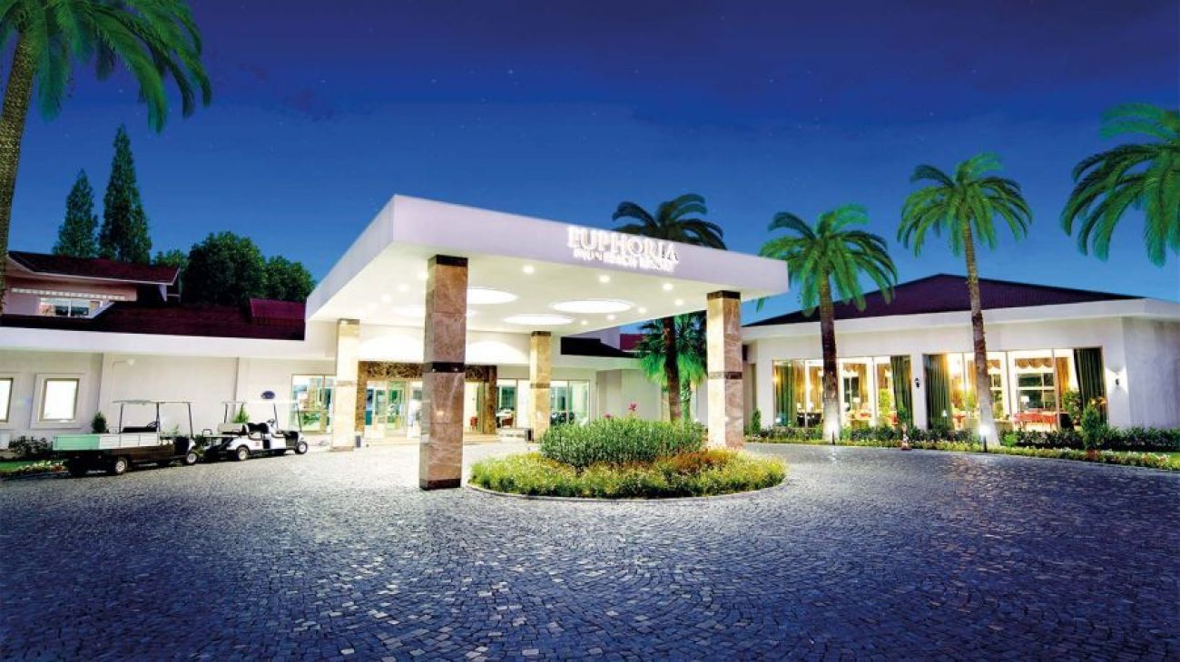 Euphoria Palm Beach Resort предлага частен плаж, открити плувни басейни с пързалки, тенис кортове на място. На разположение има също турска баня и масажни услуги. В а ла карте ресторанта с гледка към басейна се сервират турски ястия. Гостите могат да се насладят на коктейли в бара на хотела.