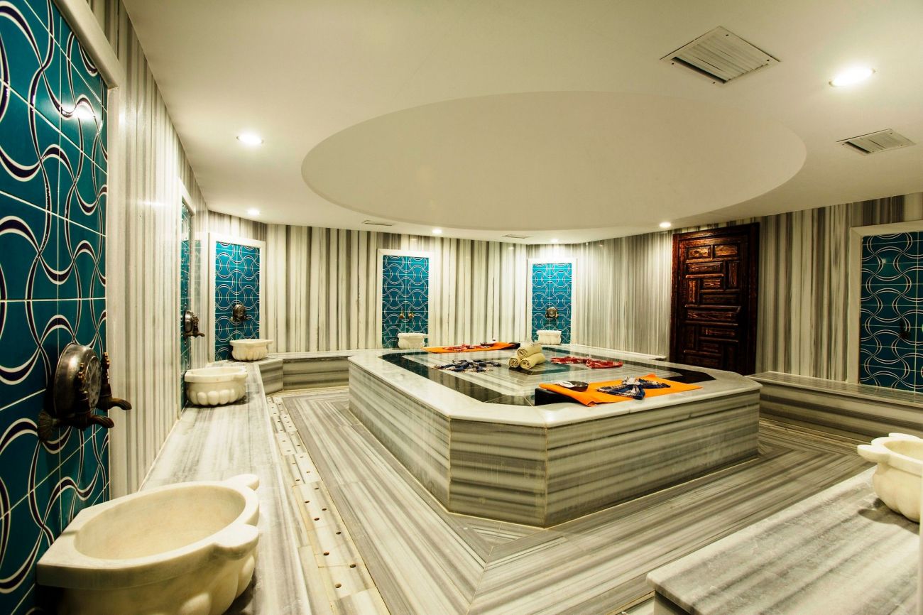Оновен ресторант, 1 а-ла-карт ресторанта (интернационален, с предварителна резервация, при минимален престой 7 нощувки), лоби бар, сладкарница, бар на плажа, открит и закрит басейн, 6 водни пързалки*, СПА център.