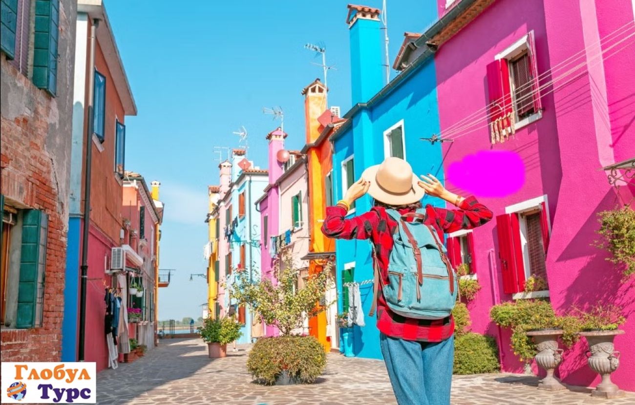 Посещение на острова на дантелата Бурано. Сред множеството пръснати островчета е и Бурано. Остров Бурано няма изящната архитектура на Венеция. Най-важна там е атмосферата. Атмосферата на празник, щастие, приказки... Всички къщи там са боядисани в ярки цветове, които зашеметяват, впечатляват, карат да се влюбиш. Според легендата, когато пийнели, рибарите посещавали къщите на своите съседи, твърдейки, че ги бъркат със своите… Ето защо съпругите им остроумно решили да боядисат домовете си в различни цветове - зелено, синьо, оранжево, червено. Всичко тук - завеси, прозорци, врати, лодки, дори домакинските уреди - е съобразено с цвета на къщите. Жителите на Бурано обичат зеленината, цветята, своя остров. Всичко на острова е направено с любов - по детски милo и романтичнo.